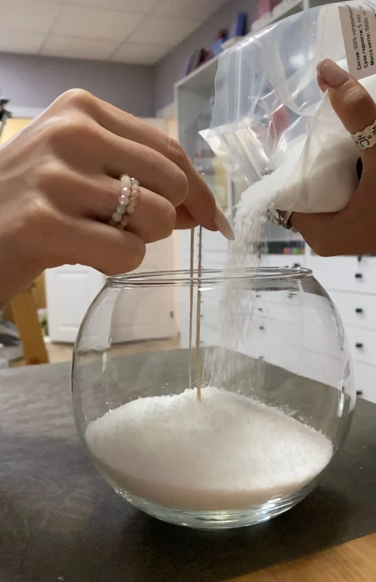 Каждый покупатель может почувствовать себя настоящим дизайнером свечей, насыпать разноцветные гранулы слоями, придумывать необычные рисунки.
