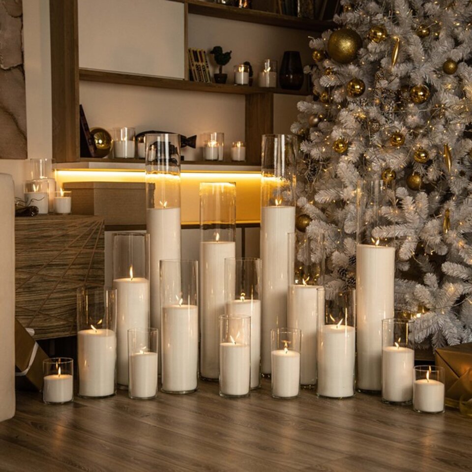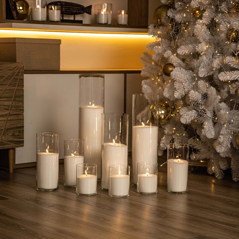 Недавно у нас появились стеклянные подсвечники и колбы (вазы-цилиндры) для насыпных свечей: