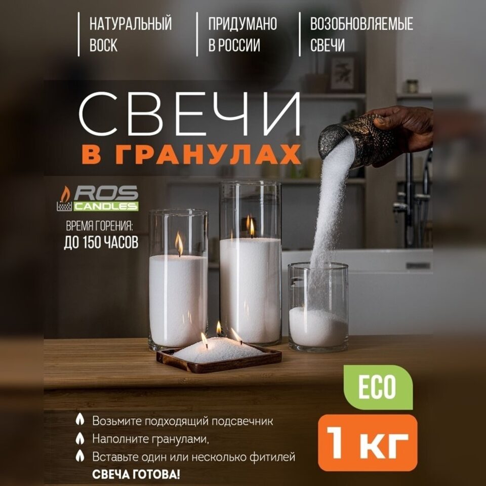 Насыпные свечи ROScandles - это интерьерные декоративные свечи из гранул воска из плодов масличной пальмы. Это как парафиновые свечи, только 100% натуральные и безопасные. Не являются продуктом нефтепереработки.