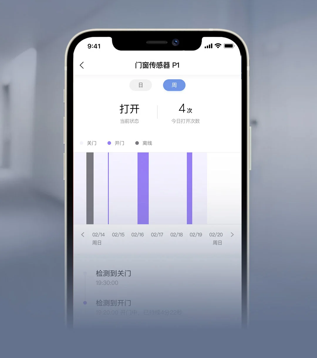 Датчик дверей и окон P1 может определять и судить о состоянии открытия и закрытия дверей и окон в режиме реального времени, а также записывать информацию о открытии и закрытии через приложение для мобильного телефона.