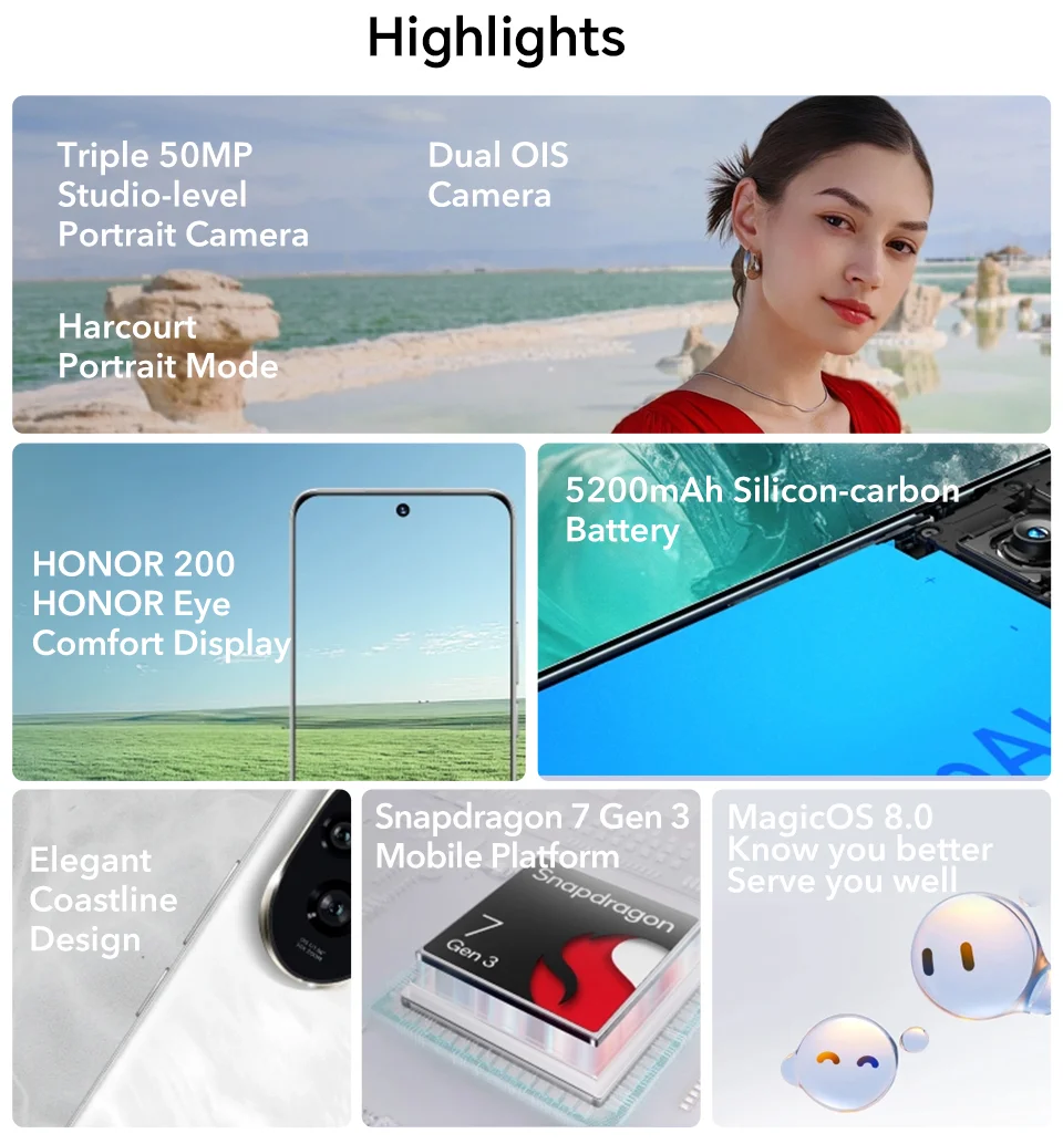 HONOR 200 Snapdragon 7 Gen 3 5G 5200 мАч Аккумулятор 100 Вт Нагнетатель 6,7-дюймовый AMOLED-дисплей