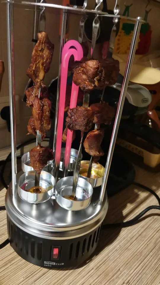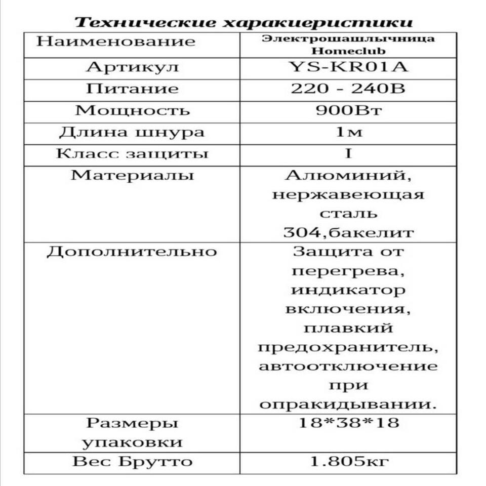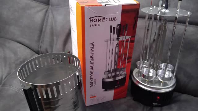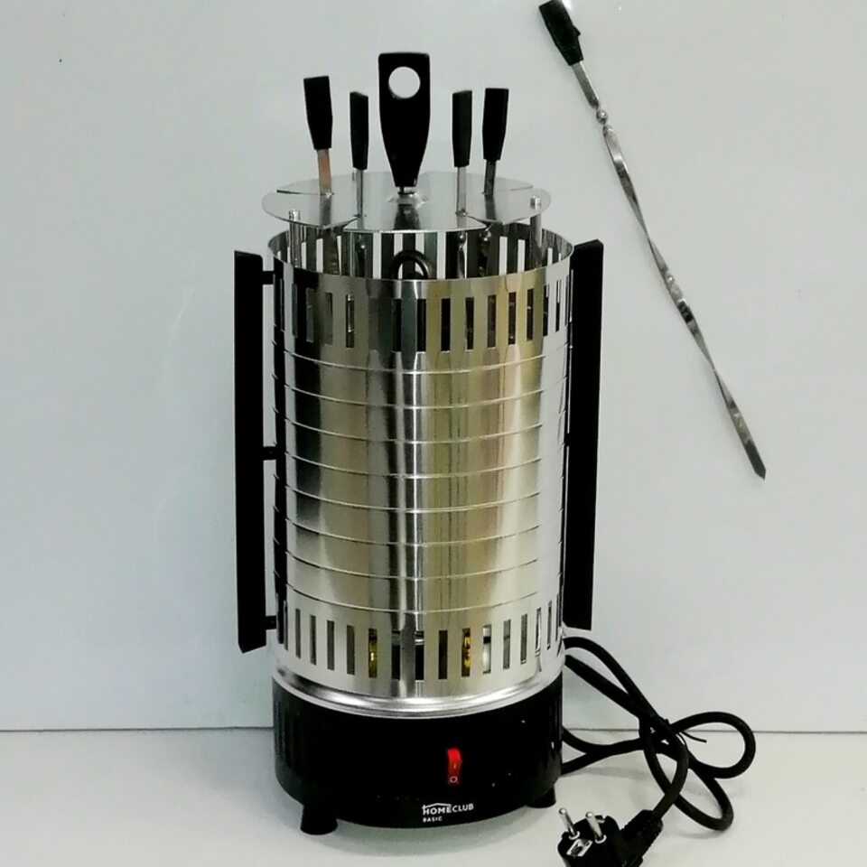 Электрошашлычница HOMECLUB SC-KG10N/YS-KR01A предназначена для приготовления шашлыка из мяса, сосисок или овощей гриль. Нагревательный элемент мощностью 900Вт находится на дне конструкции. 5 шампуров в вертикальном положении автоматически вращаются вокруг него на медленной скорости, тем самым избегают пригорания с одной из сторон. Средняя продолжительность приготовления шашлыка: 10 15 минут.