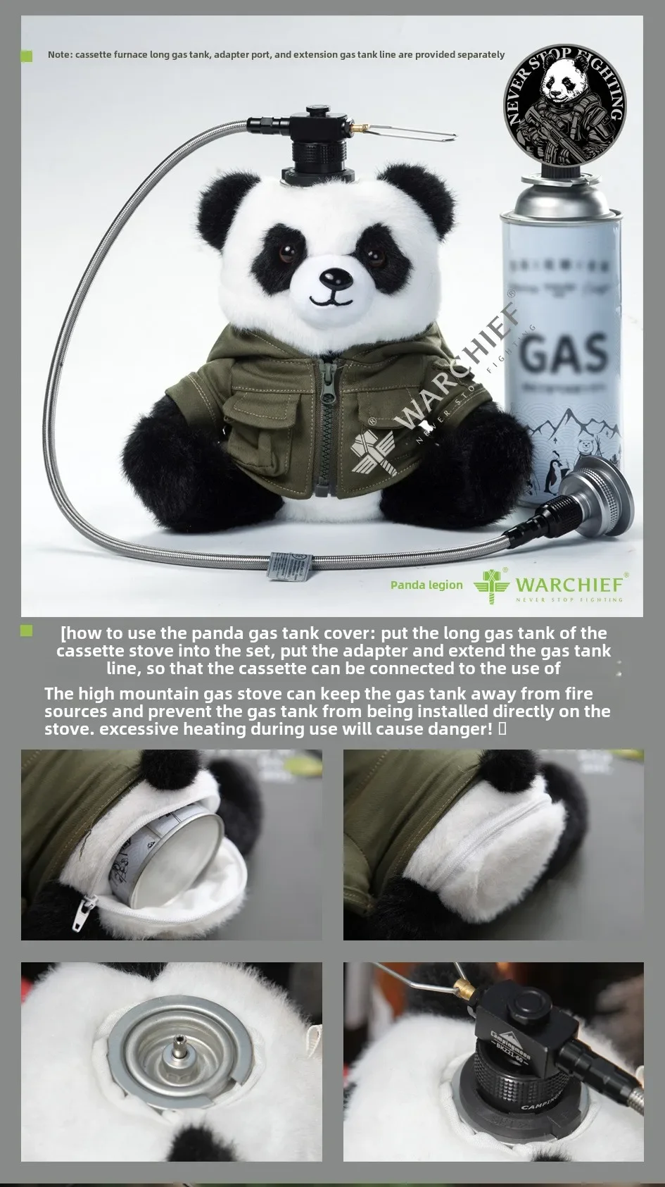 Тактическая модель панды, кемпинговый газовый баллон, защитный чехол, рукав для топливного баллона, уличный бензобак, канистра, сумка для хранения, чехол
