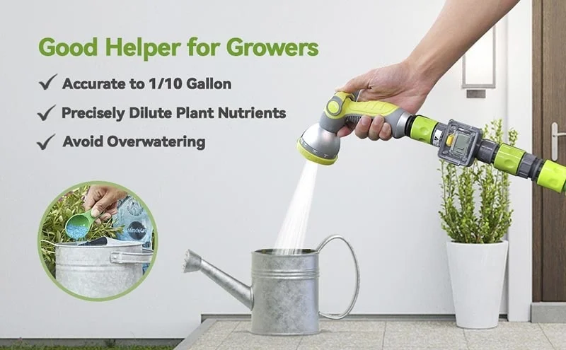 Помогает экономить воду> умный счетчик воды для садового шланга измеряет расход воды и расход, помогает точно использовать воду и экономить деньги. Вы можете использовать наш цифровой счетчик воды для сада, чтобы измерить, сколько галлонов воды необходимо для полива растений и наполнения резервуара для RV или небольшого бассейна.