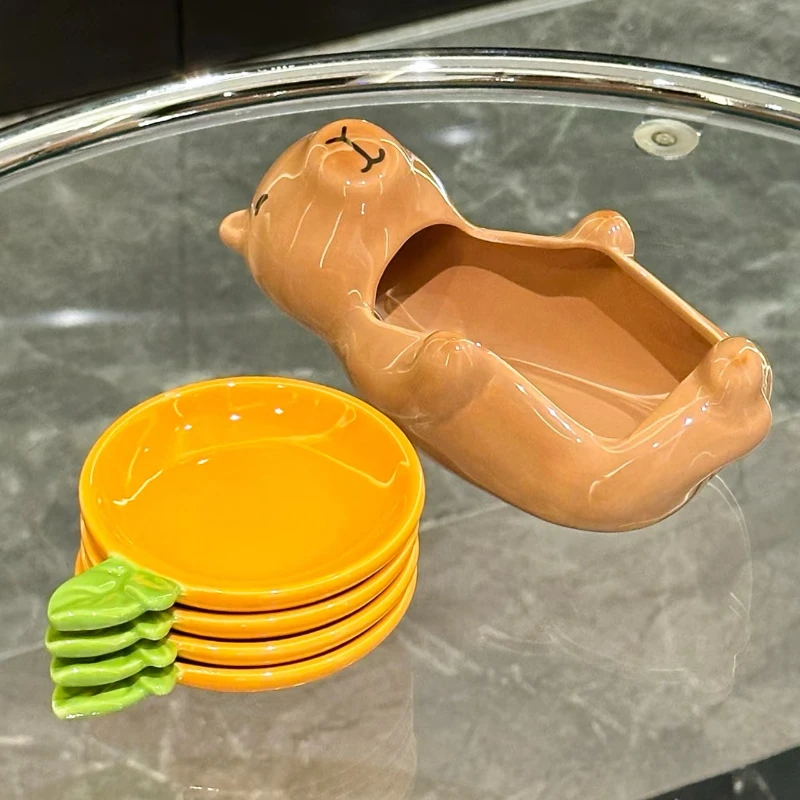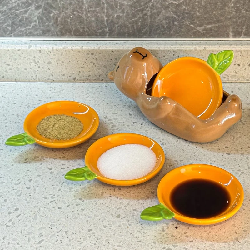 4 шт., керамическая капибара, набор тарелок для соуса, кетчуп, повязка для салата, миска для приправ, кухонные аксессуары, контейнер для соуса