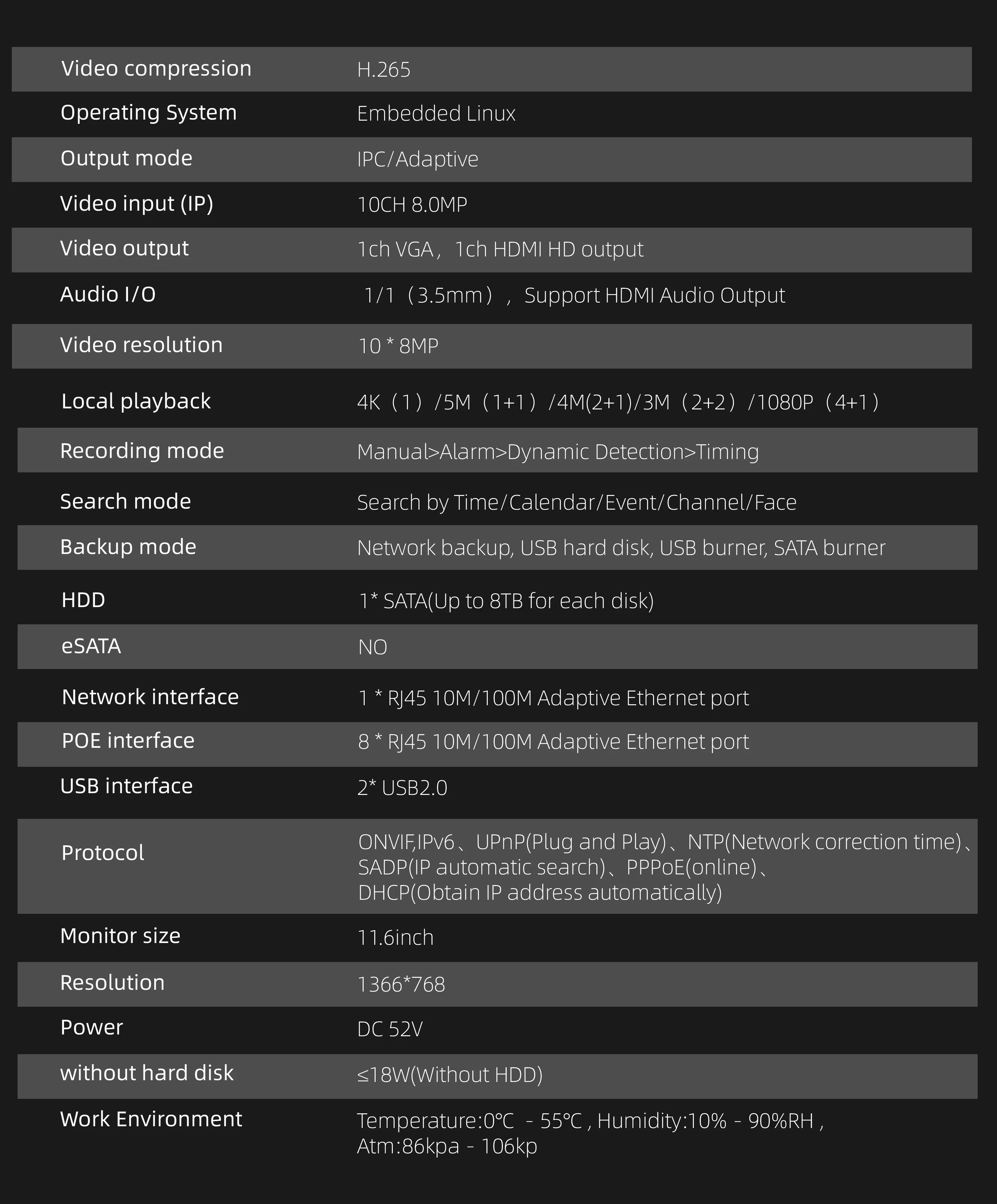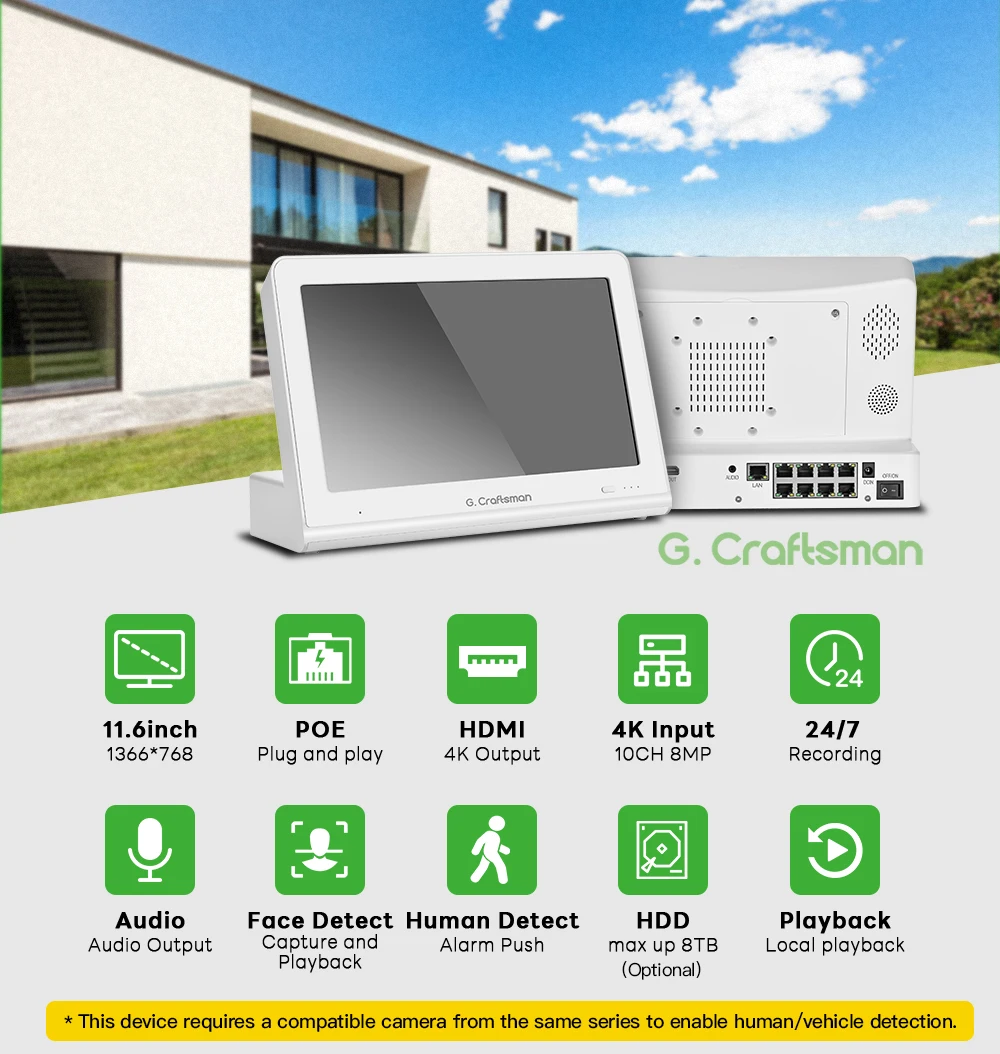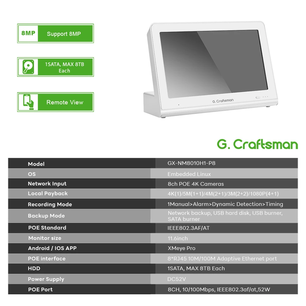 G.Craftsman GX-NM8010H1-P8 8-канальный сетевой видеорегистратор с монитором