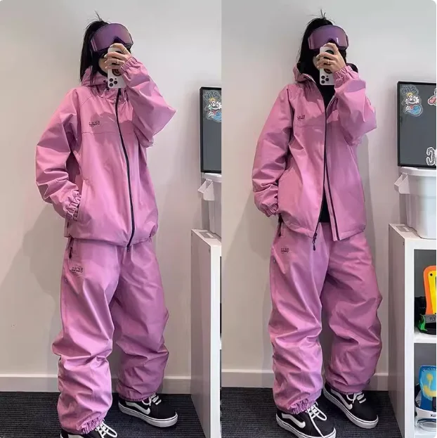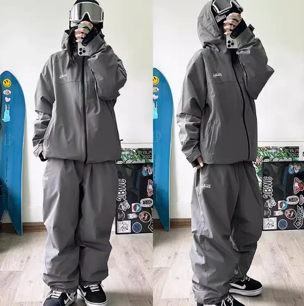 Этот комплект лыжных костюмов свободного типа подходит как мужчинам, так и женщинам сноубордистам.