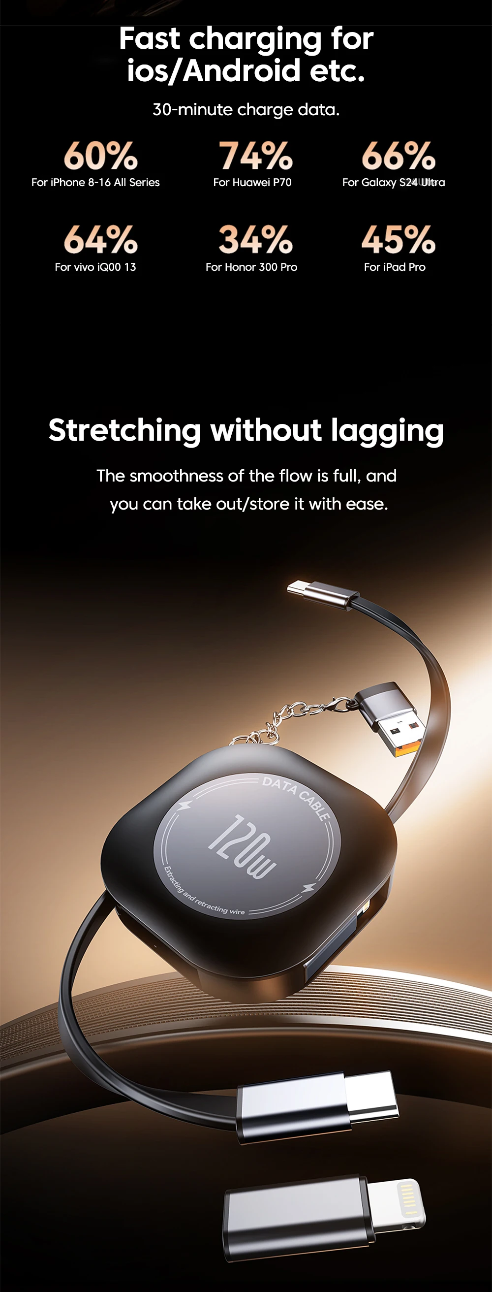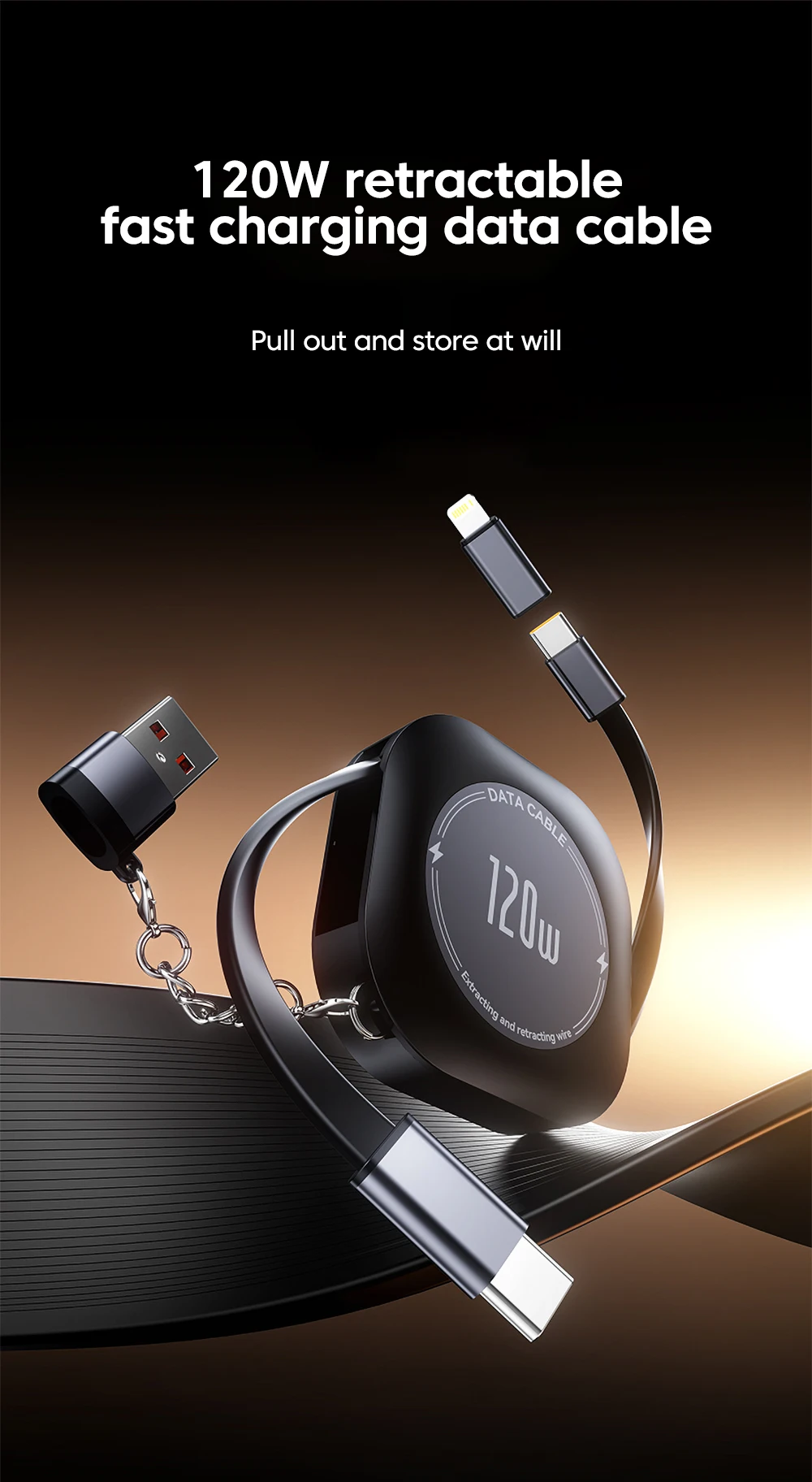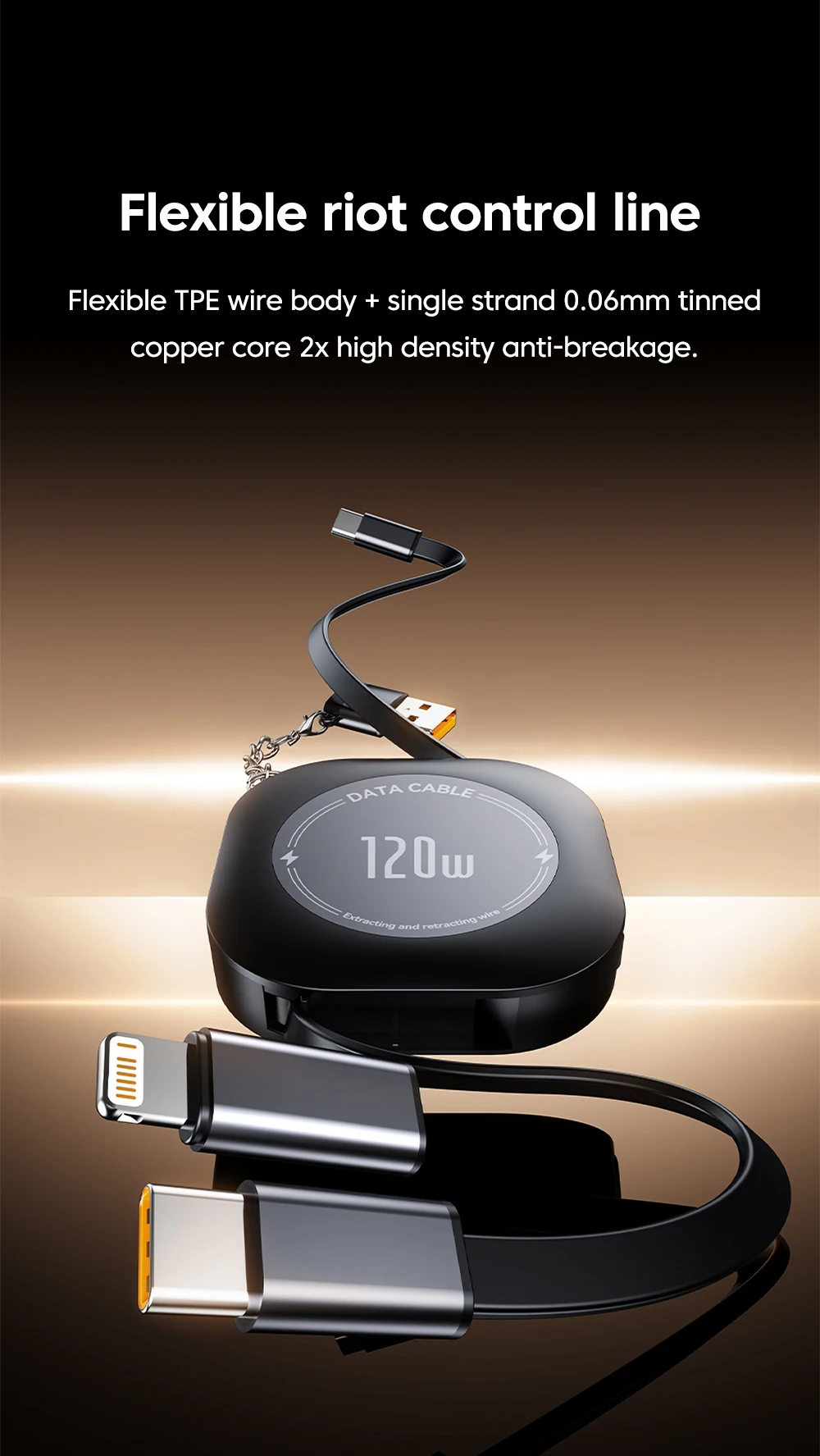 Выдвижной Кабель USB-C На Type-C PD 120 Вт Для Быстрой Зарядки И Передачи Данных Для iPhone 15/16