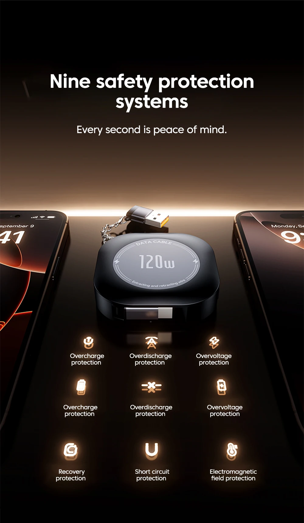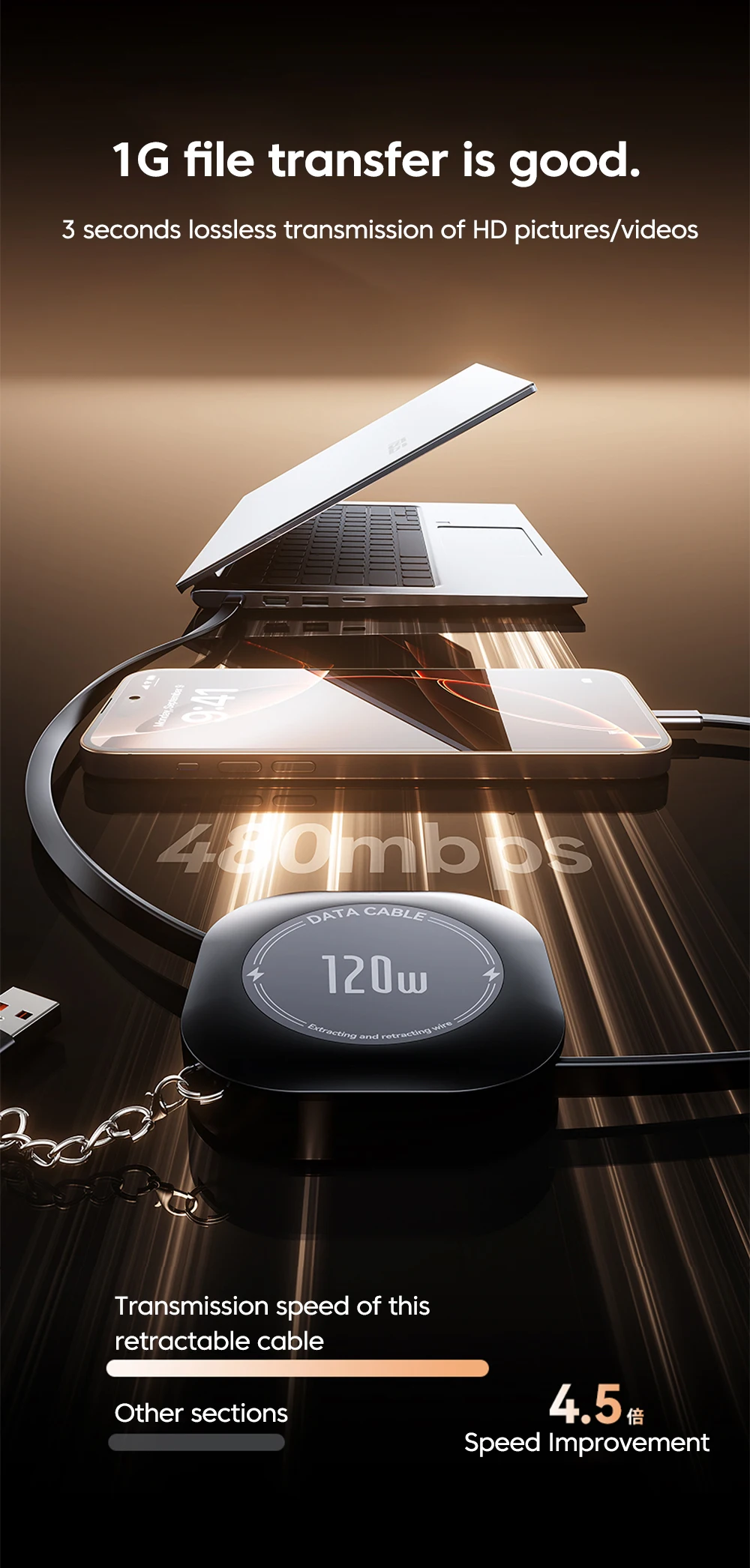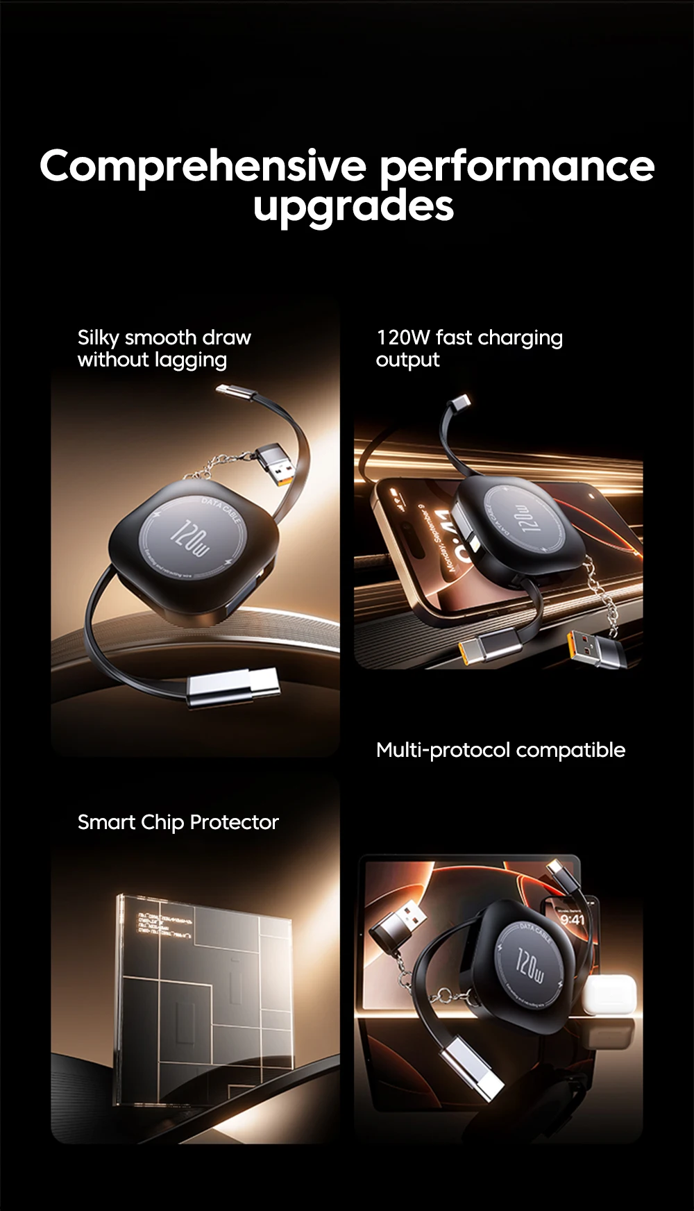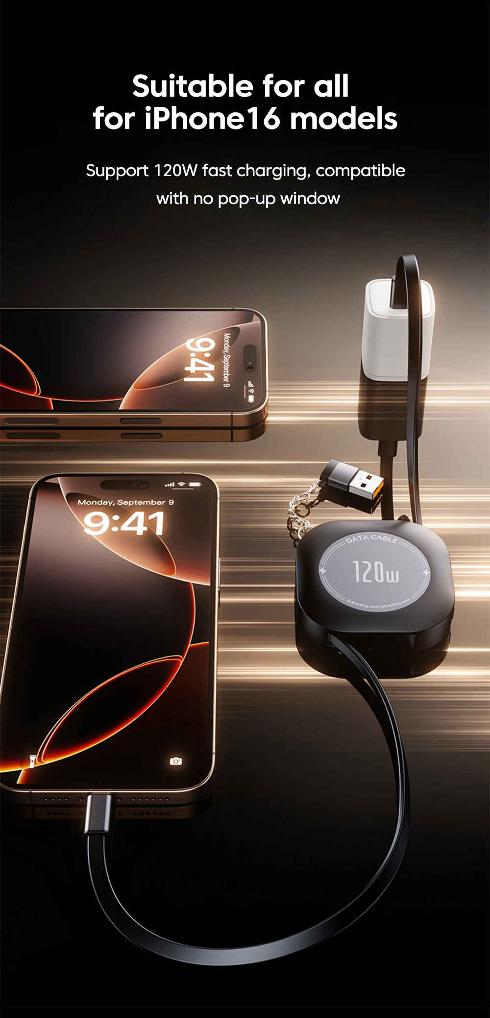 Выдвижной Кабель USB-C На Type-C PD 120 Вт Для Быстрой Зарядки И Передачи Данных Для iPhone 15/16