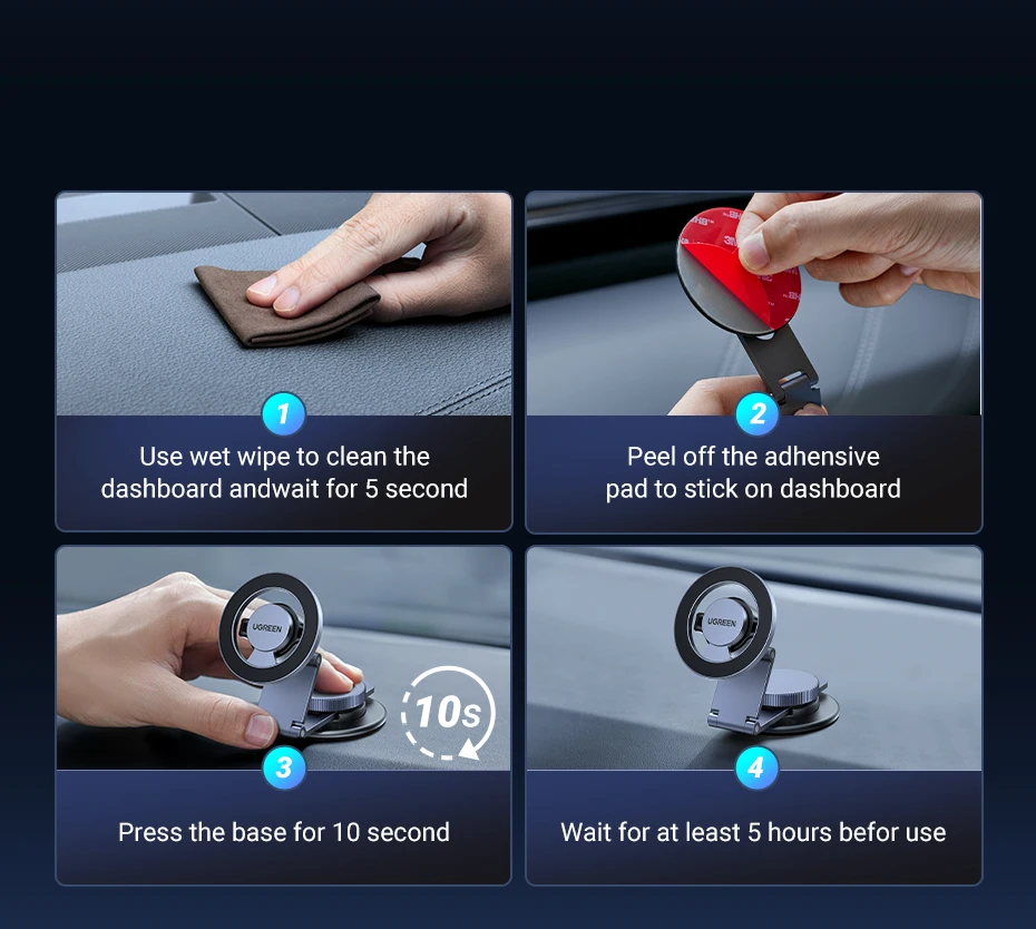 UGREEN Магнитный автомобильный держатель для телефона Приборная панель Гравитационная автомобильная подставка для телефона для Magsafe iPhone 16 15 14 Pro Samsung Xiaomi Сильные магниты