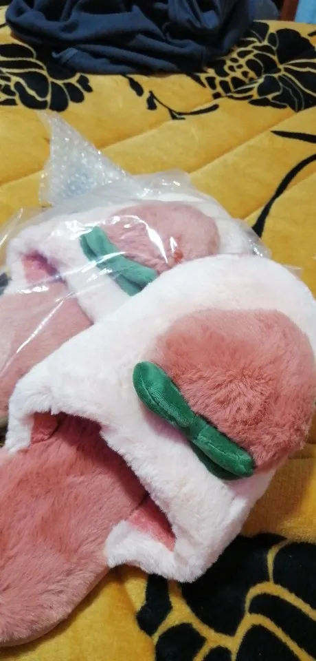 Очень мягкие, милые и удобные тапочки::)) Сначала к ним нужно привыкнуть, размер в точности соответствует, все цело и невредимо, пушок должен распушиться и стать как на картинке или можно расческой расчисать, я правда не пробовала:) единственный МИНУС , по моему мнению, это то, что в них нога не то, что бы согревается , а сильно потеет, это как бы эффект бани
