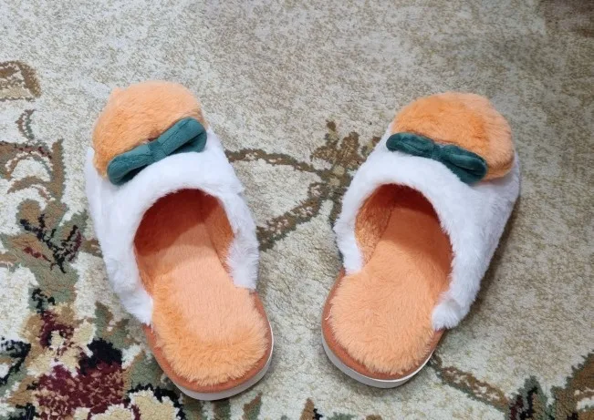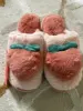 Шлепанцы для дома персиковые Chinelos женские шлепанцы с мультяшным мехом Зимние теплые Нескользящие шлепанцы