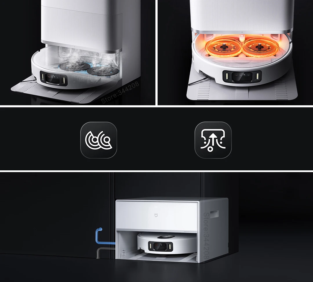 Когда боковые щетки и швабры роботизированных рычагов достигают углов, стен и других углов, они динамически выдвигаются и втягиваются, подметывая и удаляя пыль с точностью в миллиметрах, а также вытирают пятна вдоль стен.