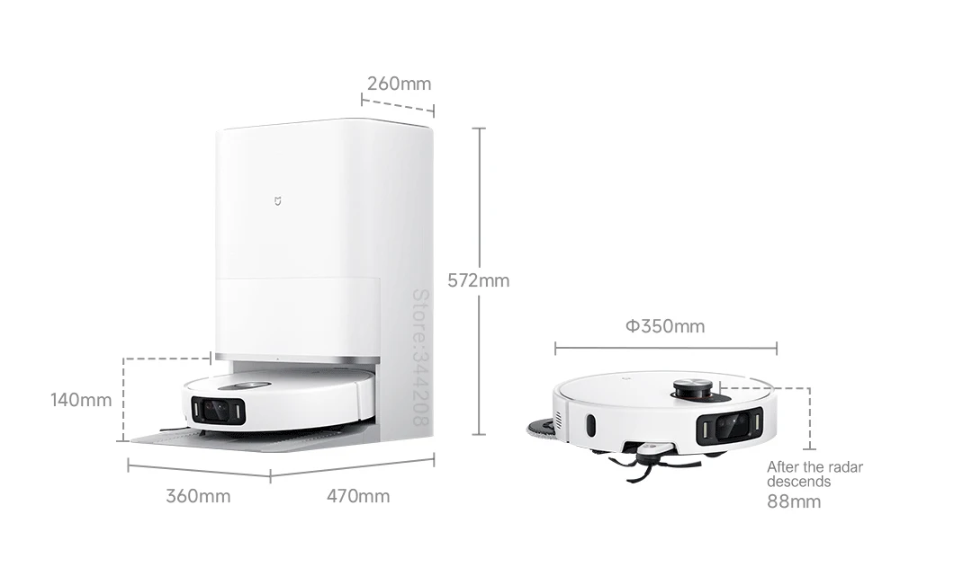 - Base station dimensions including base ramp extension pads:470*360*572 mm