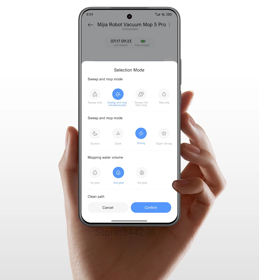 Недавно оптимизированная функция записи очистки интеллектуально генерирует динамические отчеты об уборке, автоматически пополняет маршруты уборки и отображает время уборки, площадь, препятствия, карты грязи и ежедневный статус уборки.