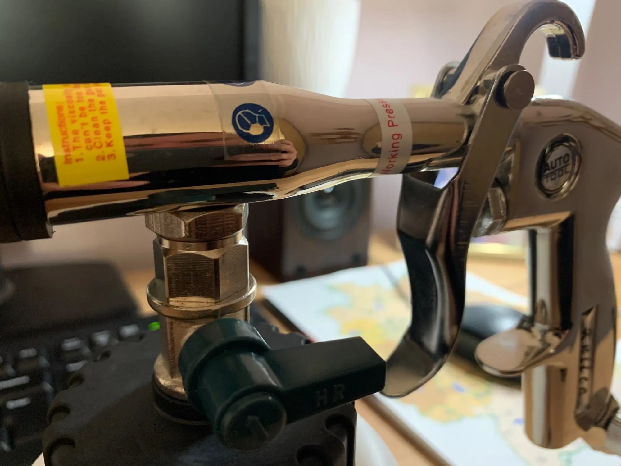 Машина подключена к воздушному компрессору, и она вращается вокруг своей оси с высокой скоростью внутри труб чистящего пистолета круглой трубы воздушного компрессора 0,4-0,9 МПа (58-130PSI). (оптимальное рабочее давление 0,7 МПа, оно не должно превышать 1 МПа). Чистящая жидкость создает эффект распыления под сильной центробежной силой, создаваемой высокоскоростным вращением круглой трубы. Распыленная чистящая жидкость прикрепится к пятну и полностью отделит пятна от поверхности детали. В то же время привлекайте радикальные частицы на соплах трубы, чтобы эффективно удалять пятна; он также может стерилизовать бактерии в автомобиле.