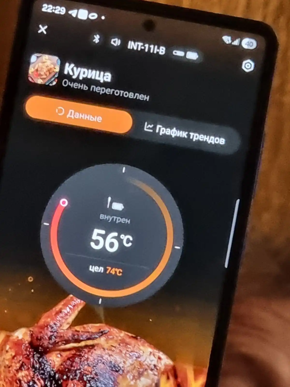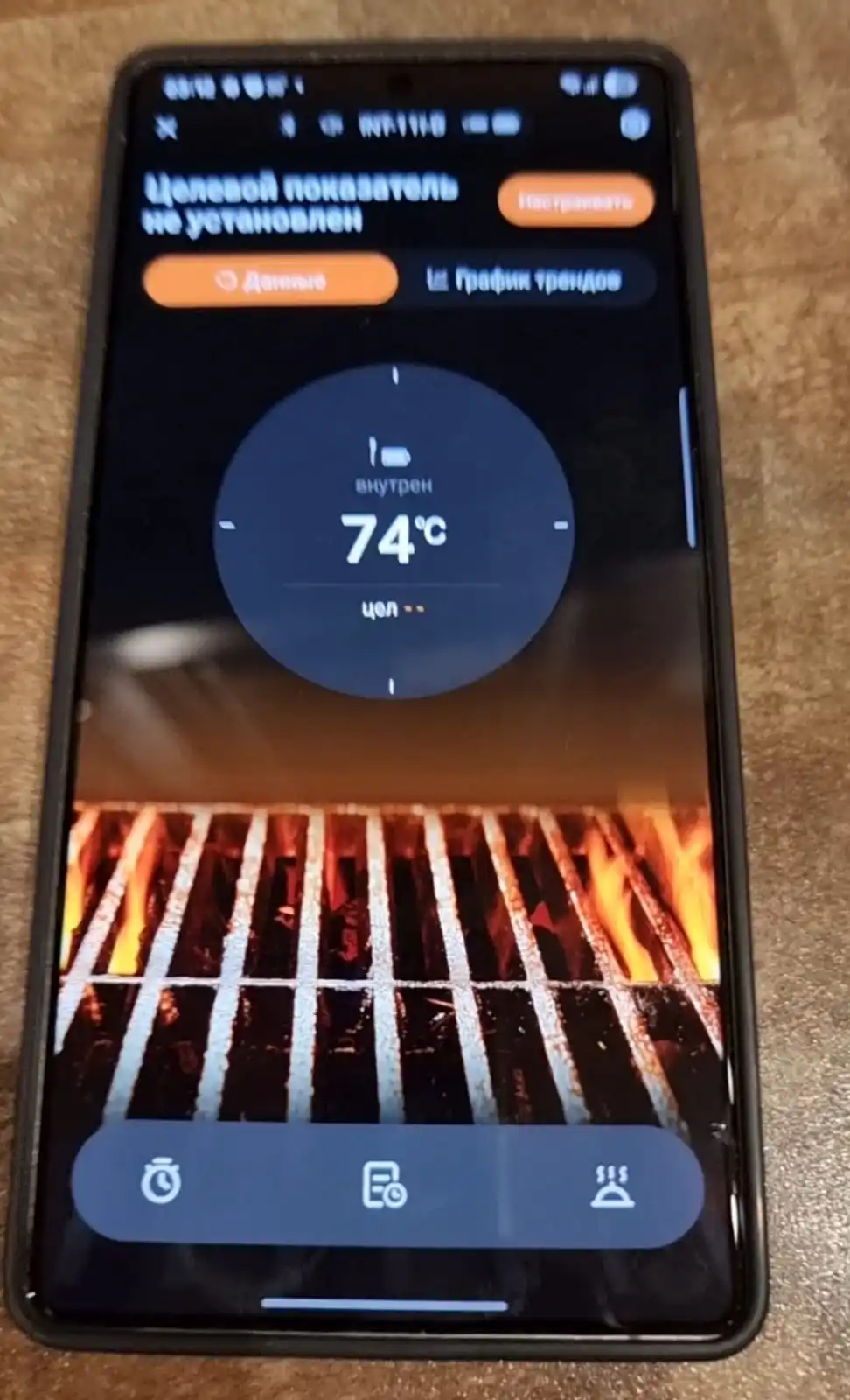 Отличное устройство! Как видно на картинке, устройство уже использовалось несколько раз, как на газовом гриле, так и в духовке, работает отлично, включая приложение.