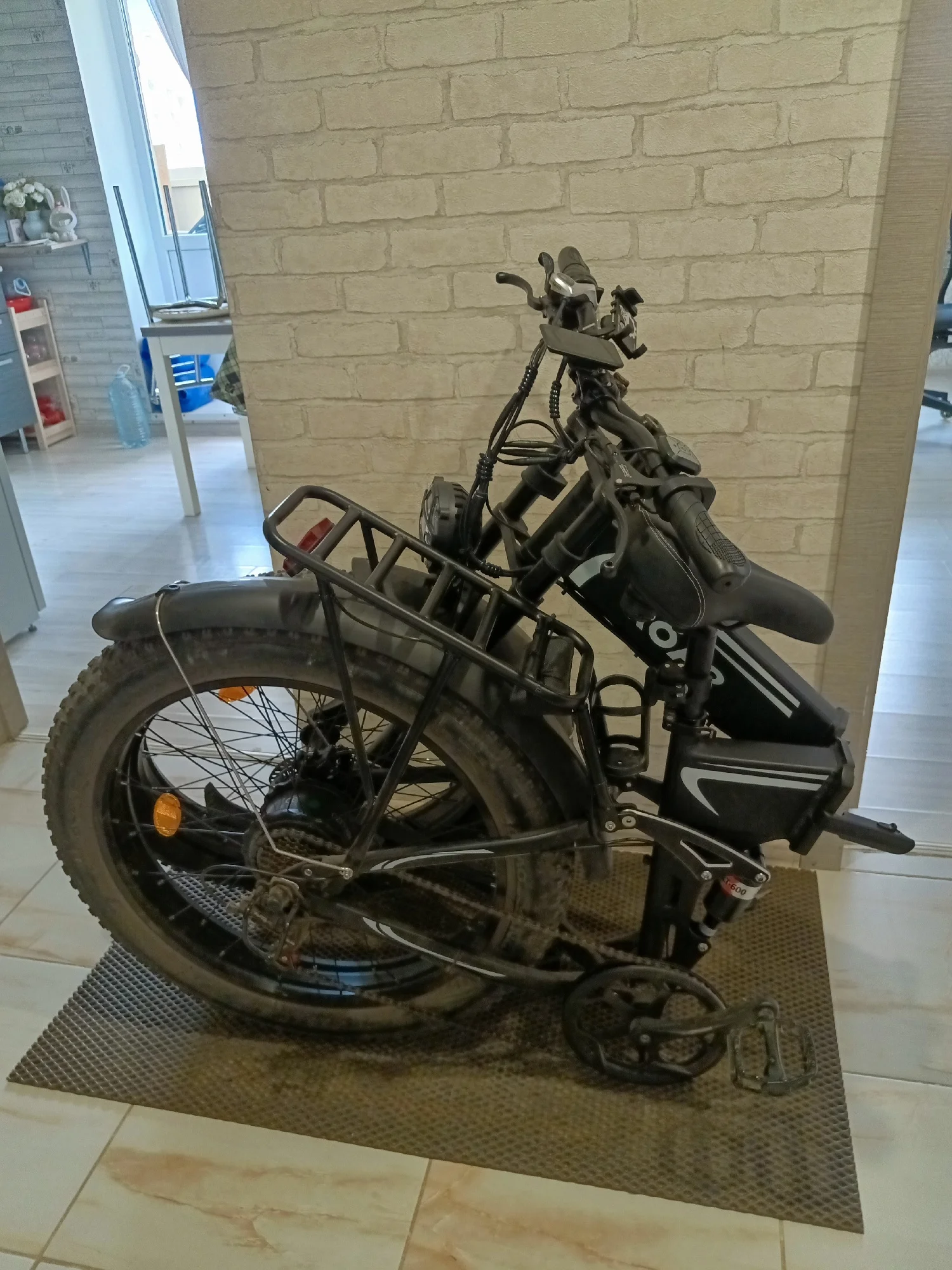 Мужики, кто сейчас думает брать или не брать, берите, я взял за 75к₽, сейчас цена на этот аппарат 64~65к₽ , знал бы взял бы попозже) перечислю преимущества данного фетбайка на батарейке: 1.складывающаяся рама это огромный + при хранении и возможность перевезти, с некоторыми изощрения и даже в багажнике обычного седана 2. нормальная подвеска, можно настроить жесткость вилки, центральный аморт реально работает, очень комфортно на проселке с буераками кататься 3. ёмкость АКБ (я думаю 15т мАч, но точно не 20т заявленных в характеристике) но мне хватате за глаза если вы хотите кататься с ассистентом, то АКБ вообще не высаживается)) мне нравиться именно такой режим, т.к. катаюсь в свое удовольствие и с попутчиками на обычных велосипедах. 4. Вид велосипеда, он с внешней стороны похож на обычный (складной) фетбайк с люверсами, т.е. он ещё выглядит как обычный велосипед а не электричка, благодаря расположению АКБ прямо в раме, это + к внешним виду и практичности. 5. Цена, на момент 15.05.25г сегодняшнего времени это лучшее предложение на рынке. так же хочу добавить по косячкам с которыми встретился сам и несколькими доработками: 1. батарея не плотно прилегает внутри рамы и на кочках будет стучать об нее. решение: олейте тонким картоном на двухсторонний скотч саму АКБ в двух -трех плоскостях (см. фото) и грохот прекратиться. 2. дополнительно промазал герметиком крышку прилегания складной рамы с АКБ входом, чтобы полностью избежать попадания влаги в данный разъем при езде под дождем, снегу и т.д. 3. был неприятный скрип внизу амортизатора, за шатуном в месте рычага крепления заднего колеса, как видно на фото туда первым попадает грязь и влага и он начинает скрипеть. я просто пробрызгал вд-40 и скрип/писк при работе подвески - ушел. 4. нет штатных отверстий на раме под болты крепления, как на всех велосипедах ,обычно туда ставят держатель для бутылки, я докупил, как видно на фото, универсальный который закрепил сзади штока сиденья, стоит хорошо, бутылочку 0.5 держит удобно без лишнего шума. Ну ав целом я очень доволен покупкой, ну и цена, цена сейчас действительно очень вкусная на него, берите пока доллар дешёвый🙂