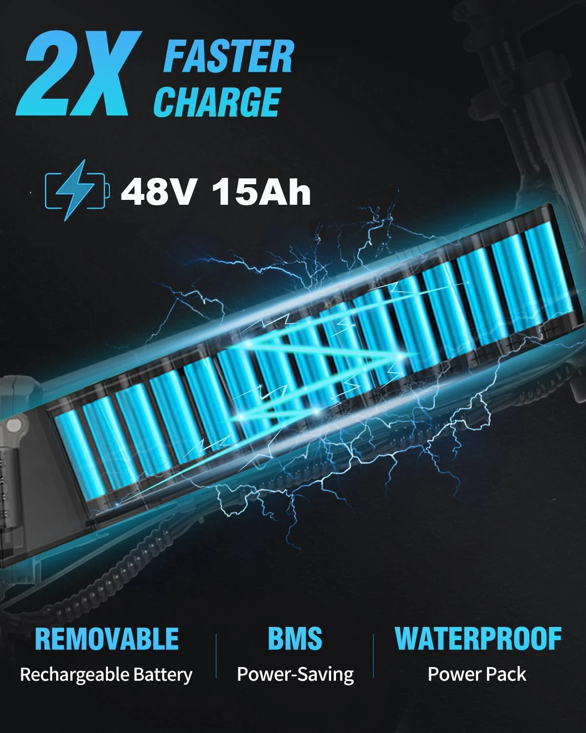 - Battery:48V 15AH removeable lithium battery