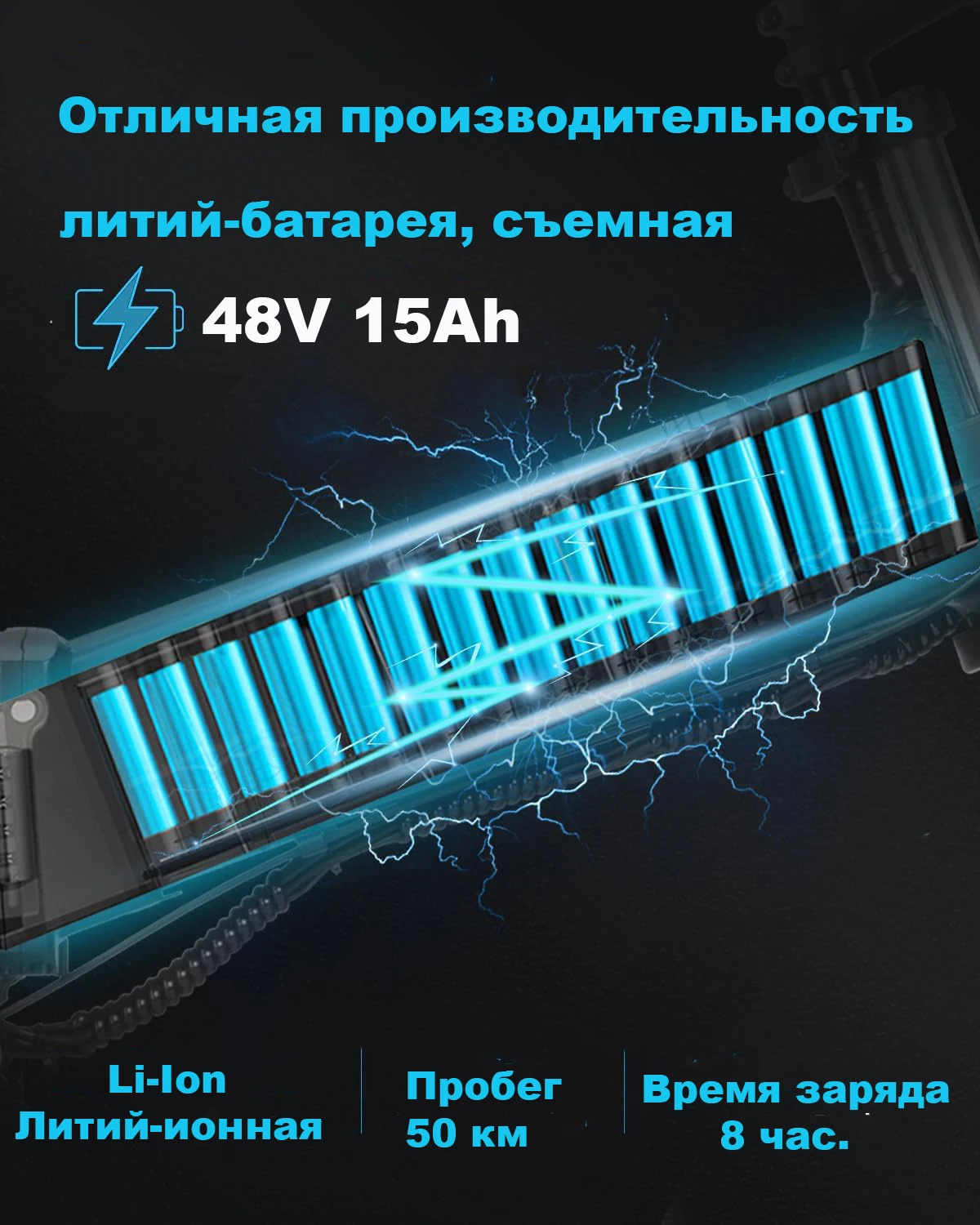 Батарея: съемная литиевая батарея 48 В, 15 Ач.