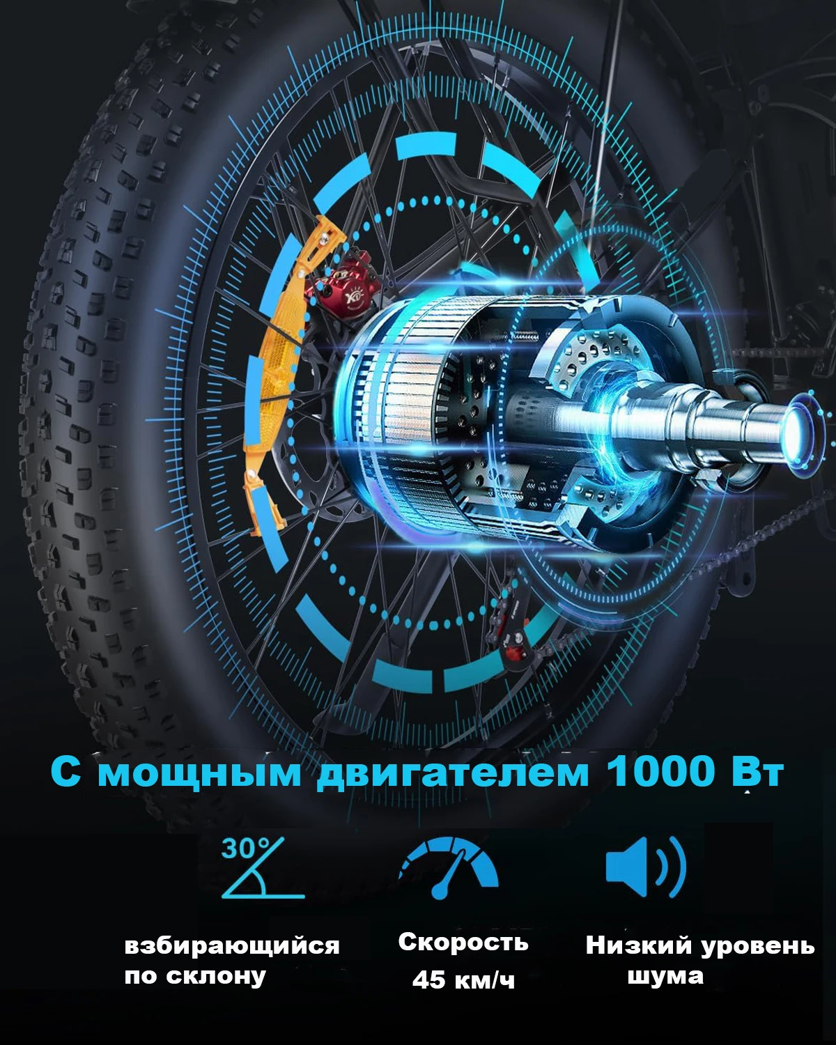 Благодаря высокоскоростным бесщеточным мотор-редукторам мощностью 1000 Вт наш электрический велосипед может легко ускорять до 45 км/ч, предлагая вам более быструю и приятную поездку.