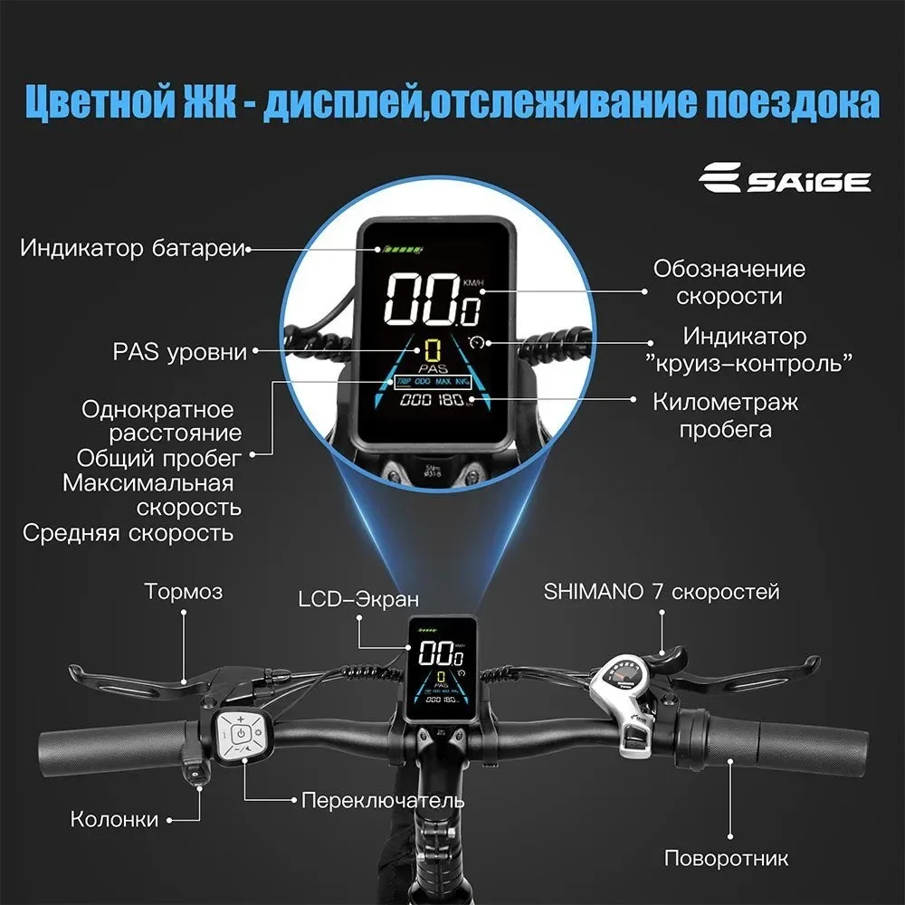 ЖК-метр: интеллектуальный ЖК-дисплей, который показывает скорость, состояние батареи, уровень помощи при педалировании и т. д.