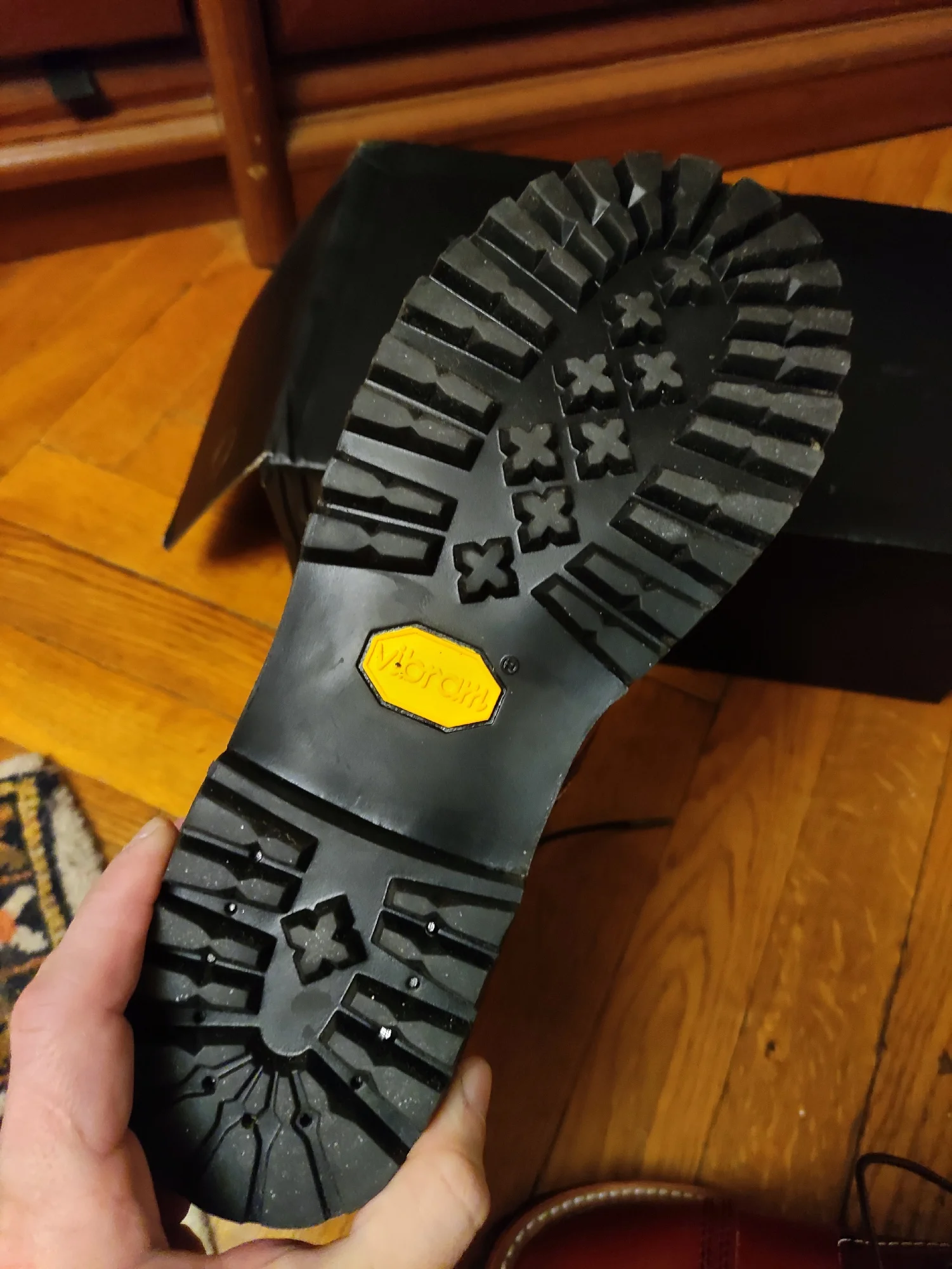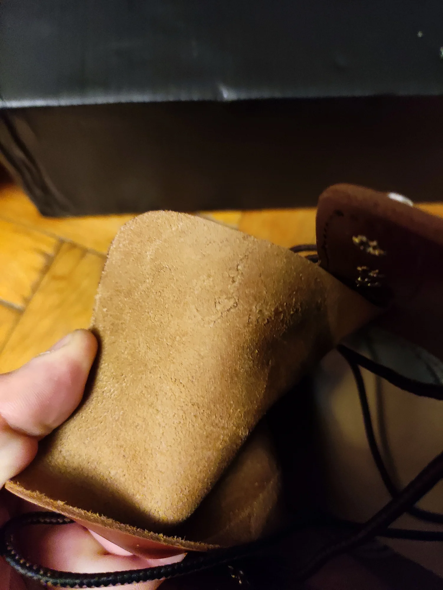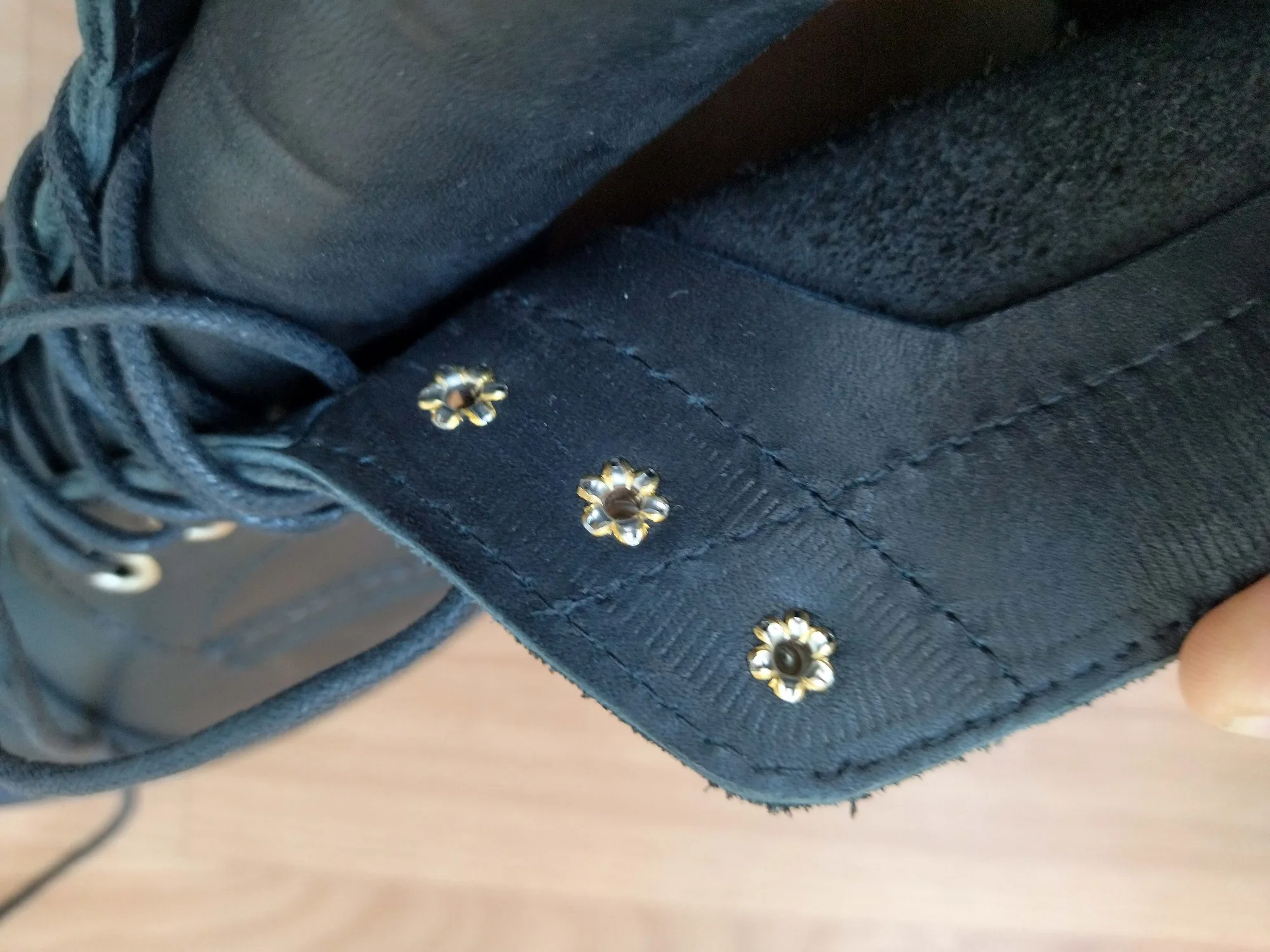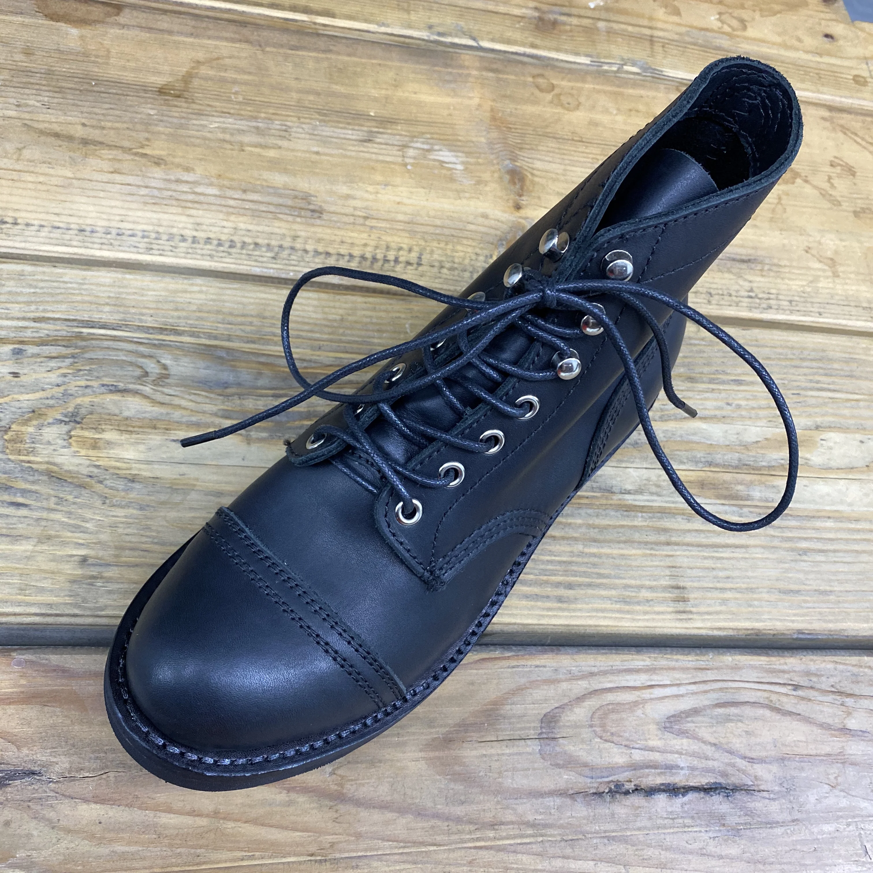 Во Владивосток доставили за месяц. Ботинки выглядят отлично. Сделаны из кожи, жесткая подошва, каблук подбит гвоздями, крючки и люверсы выглядят крепкими. Упакованы в картонную коробку, для каждого ботинка есть пыльник. Размер подошел: длинна моей стопы 26,5 см, взял 41. Для большого пальца есть запас, по бокам немного поджимает. Думаю и 42 бы подошел, так как носить такую обувь только со стелькой. Тем у кого высокий подъем берите на размер больше. Так же, если планируете вставлять стельку, посадка ноги становится плотнее - исходите из этого когда будете выбирать размер. Эта обувь, явно, не для холодной или дождливой погоды. Теперь к недостаткам. Запах клея - временный недостаток. Сомнения вызывают: тонкая стелька, и то как сшиты половинки берца (фото 1), кривой шов (фото 2), есть не прошитое место (фото 3,4) гвозди не забиты до конца (на фото 5 каблук слева забил сам). Когда будете подбивать, он может вылезти - учитывайте это. Ожидал что продавец учтет мои пожелания, так как я хотел что бы они были похожи на IRON RANGER 8084. Но видимо я неправильно донес до него информацию. В любом случае спасибо. Надеюсь что в последствии продавец учтет эти недостатки.Alexsandr Z. 17 декабря 2023