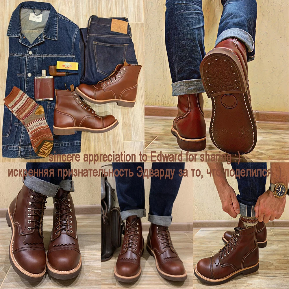 YQ8111 Американские ботинки ручной работы Goodyear с рантом на заказ Красный Торнадо Размер 35-52 Подлинная