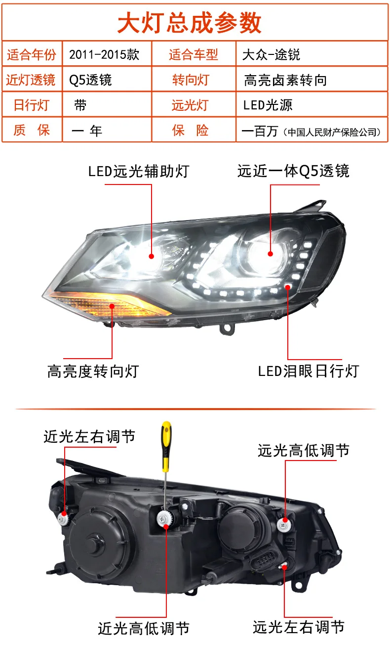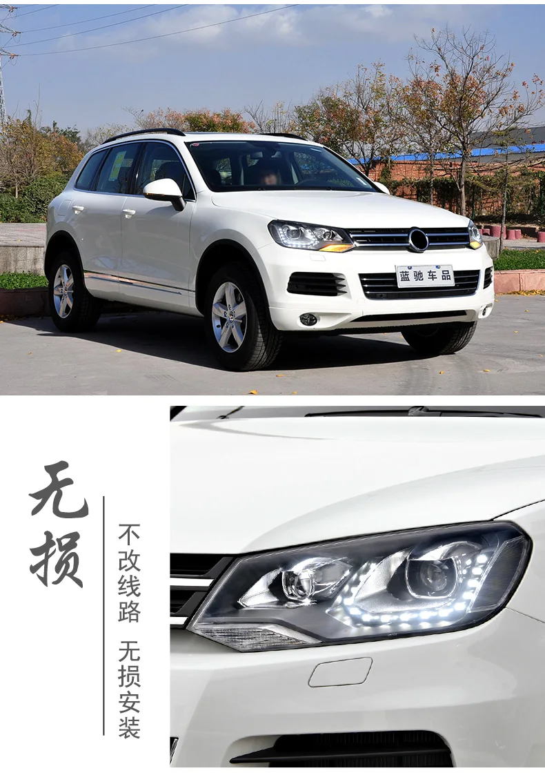 Автомобильные аксессуары, фары для VW Touareg 2011-2015, светодиодные фары, ДХО, двухлучевые, биксеноновые, спрятанные автомобильные аксессуары