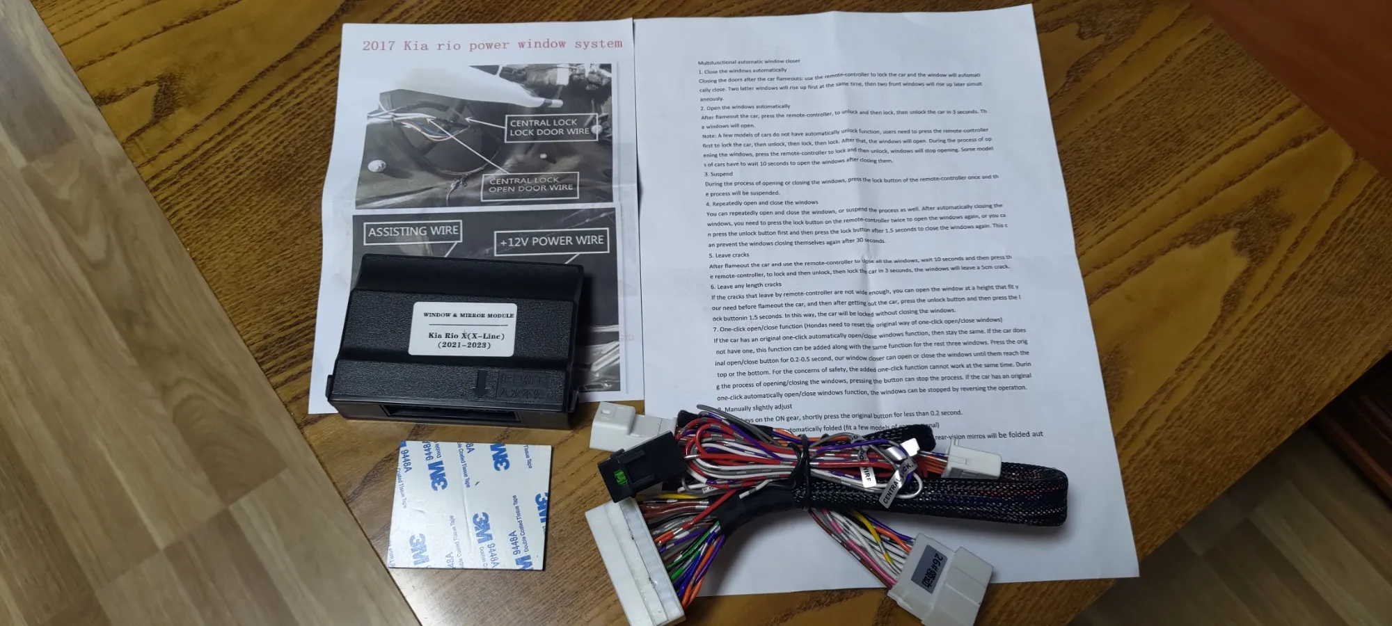 Заказал для Kia Rio X со складывающимися зеркалами. Пришел за 17 дней. В комплекте не было ни запасных клипс для дверной карты, ни зажимов для врезки в провод. Инструкция на английском.