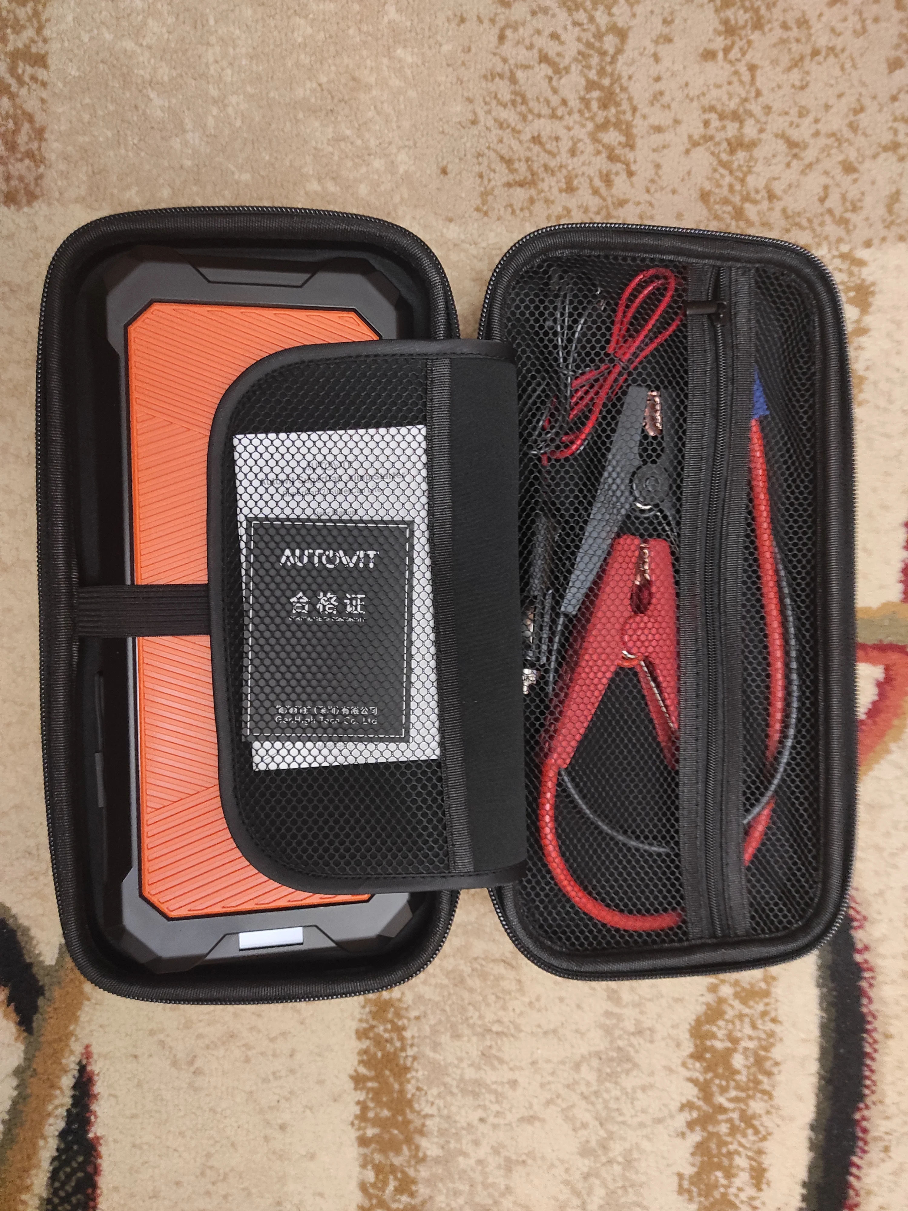 В коробке Суперкрышка 2 стартера*1, чехол для переноски*1, прикуриватель*1, зажимы типа «крокодил»*1, USB-кабель для зарядки*1, руководство пользователя*1.Гарантия 1 год.
