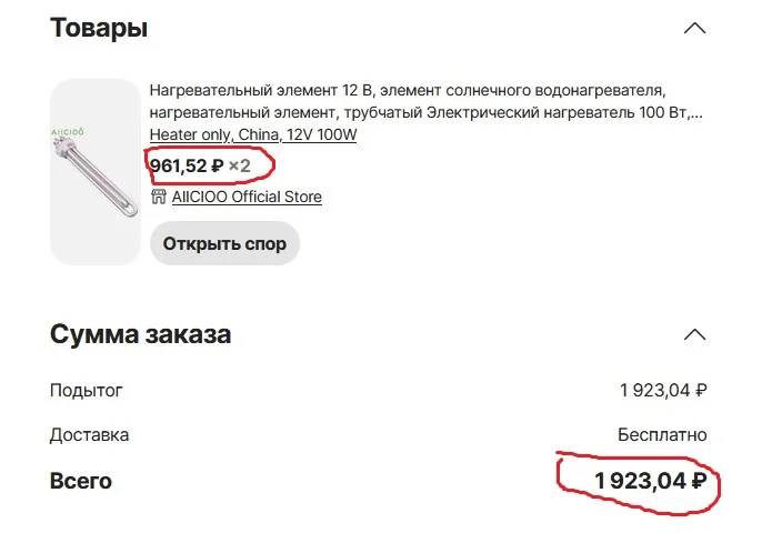 ТЭН пришёл, относительно быстро: заказал 19 сентября, пришёл 15 октября. в Тулу. Пока не проверял на нагрев, но тестером спирали прозвонил - по сопротивлению всё в порядке. однако, я заказывал два тэна, и оплатил за два. а пришёл только один. один за почти две тысячи... несколько дороговато. написал продавцу, жду ответ...Alexey K. 17 октября 2022