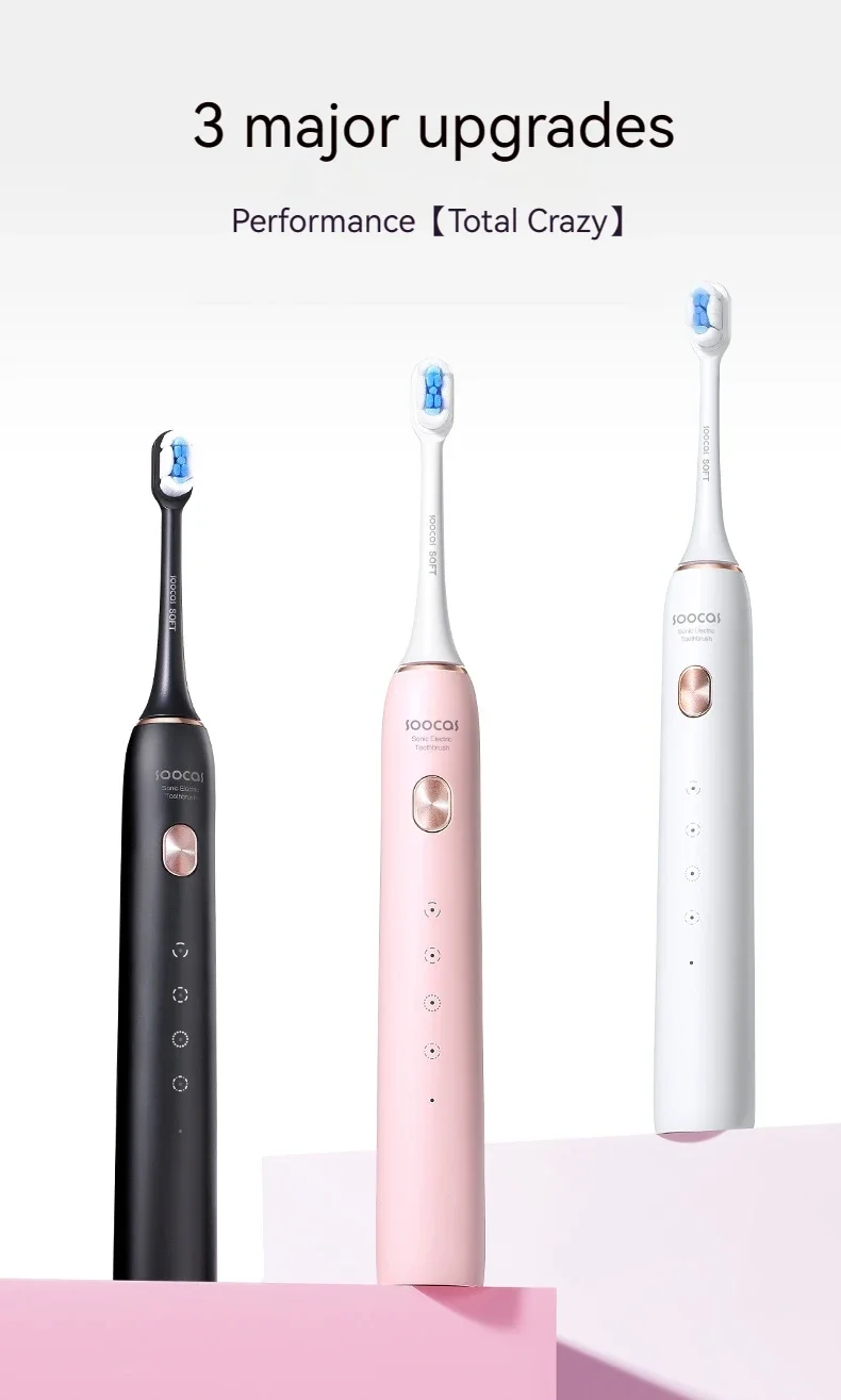 SOOCAS X3S звуковая электрическая умная зубная щетка для взрослых IPX8, водонепроницаемая, 180 дней, срок службы батареи, ультразвуковые насадки для зубных щеток с мягким облаком
