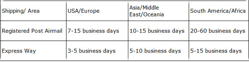 1.Заказы будут отправлены на следующий день после подтверждения оплаты, и доставка может быть готова почтой Нидерландов, почтой Сингапура, EMS или DHL.