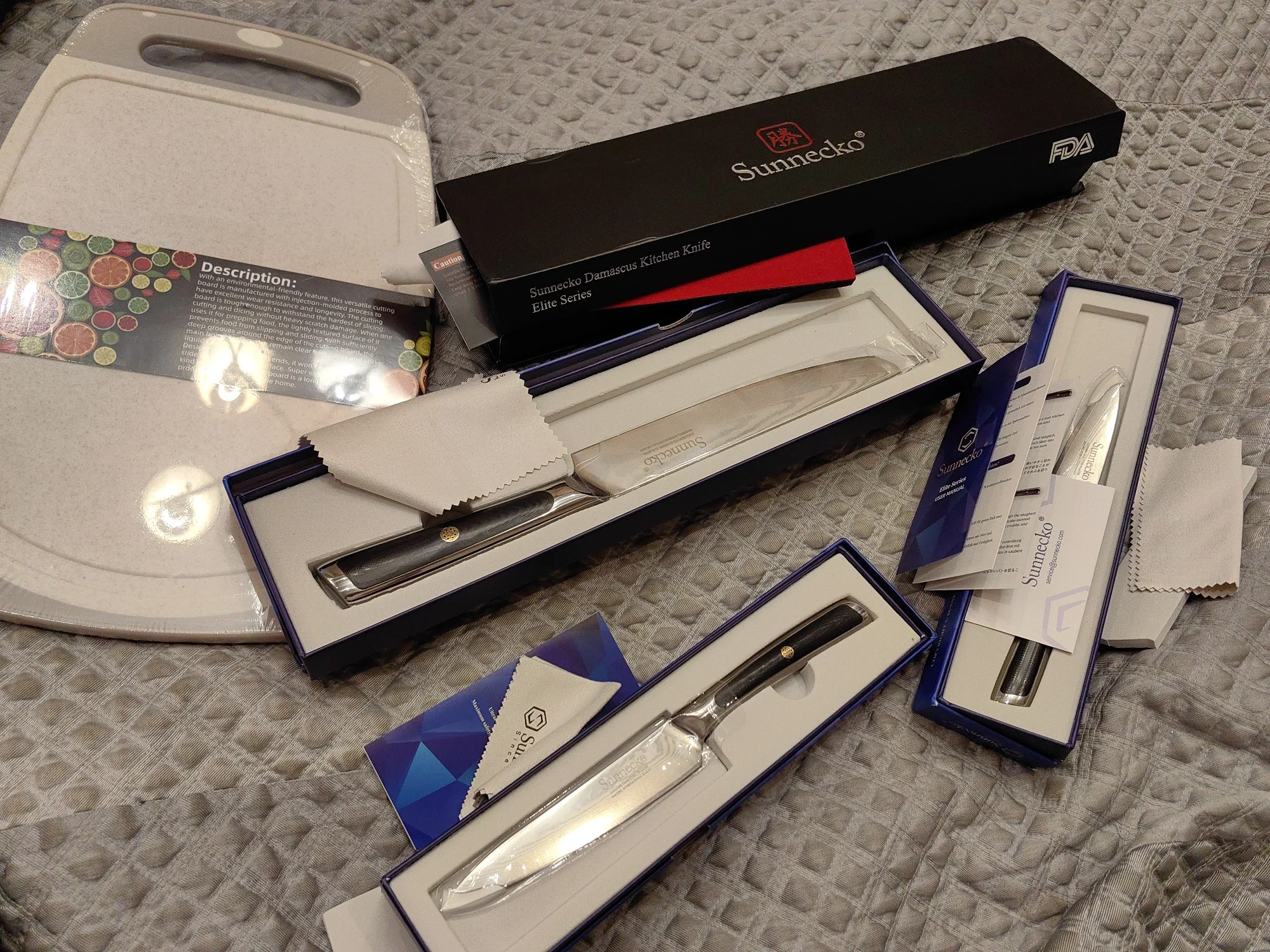 Отлично, прибыло быстрее на две недели. 4 прекрасных тяжёлых ножа, сталь vg 10. Знающие оценят. Режет все как масло... Доска в подарок! Спасибо продавцу!