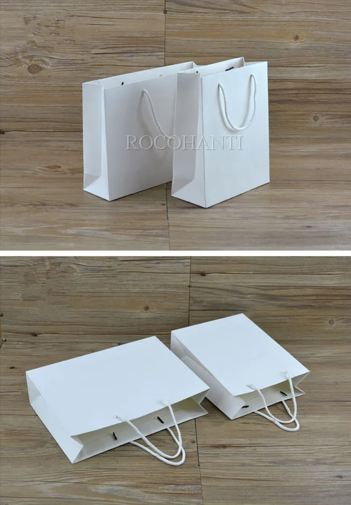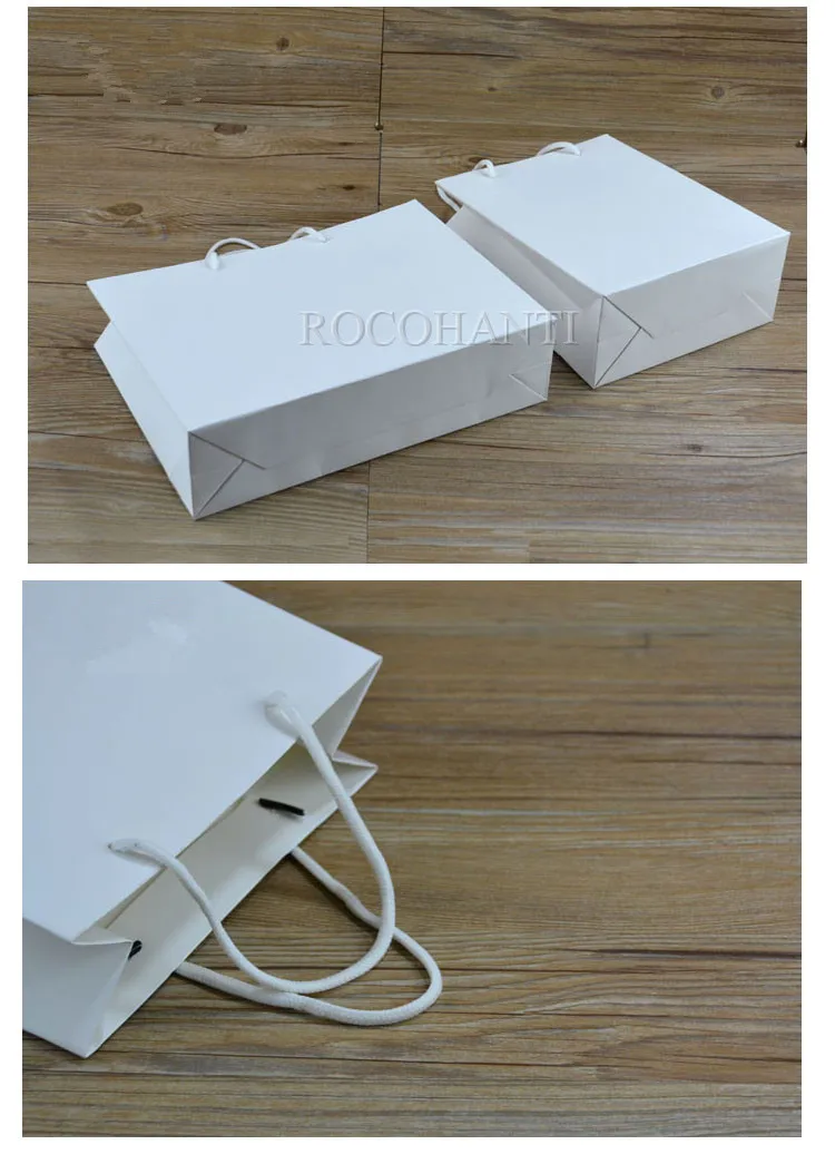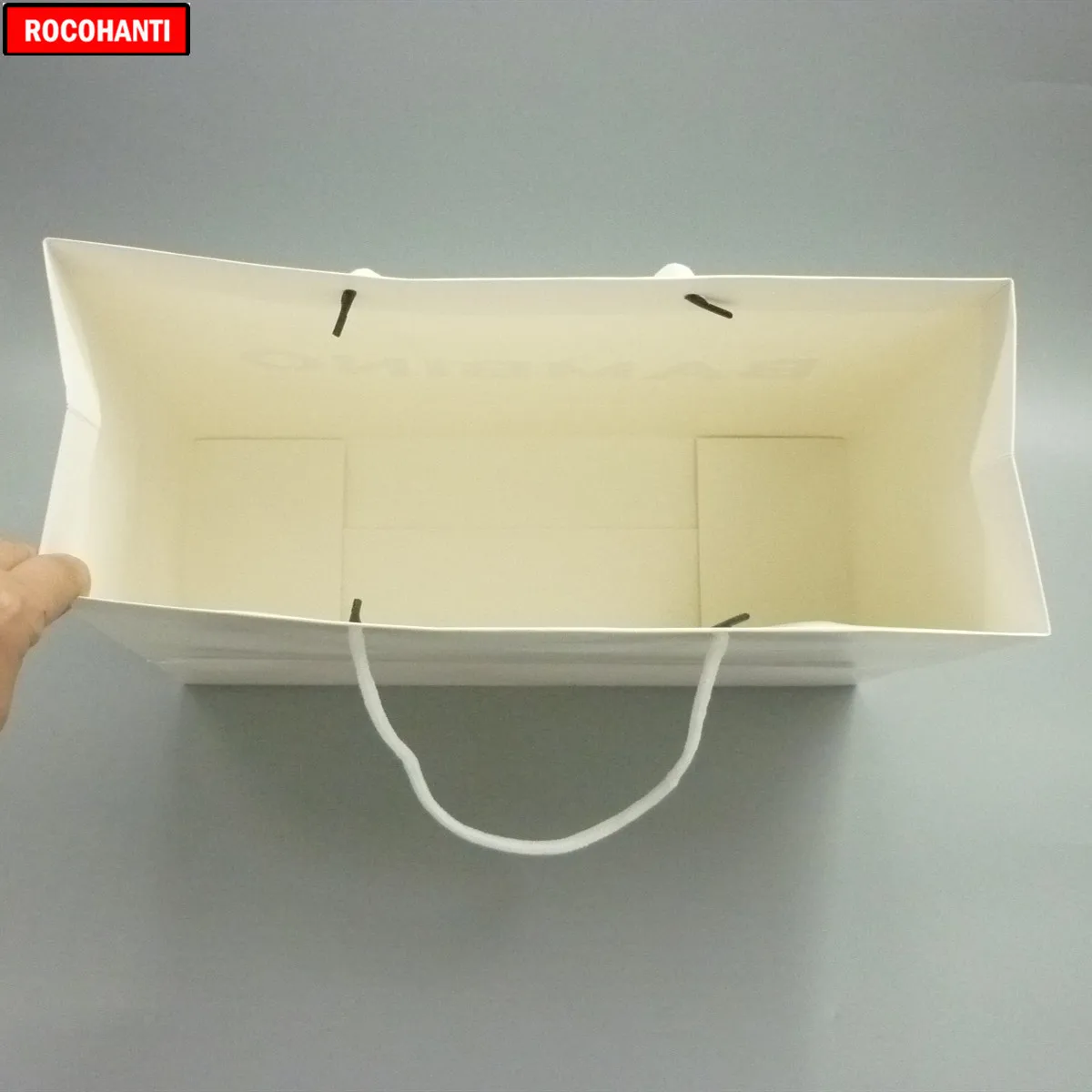 Изготовленный на заказ логотип, толстый гетро-белый бумажный пакет, 250 грамм, картонная бумага, подарочные пакеты для покупок с веревкой