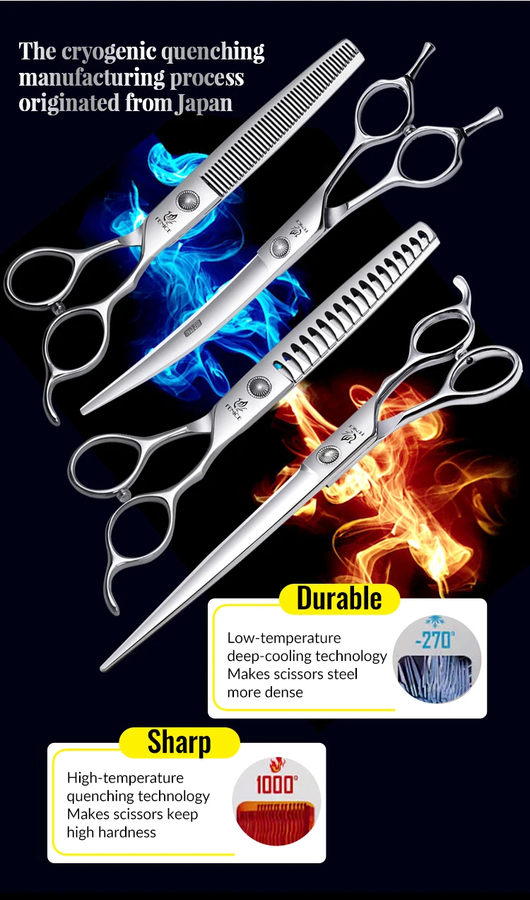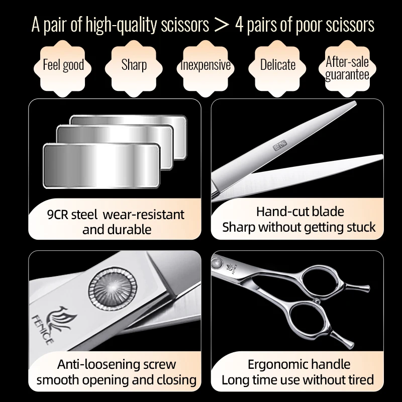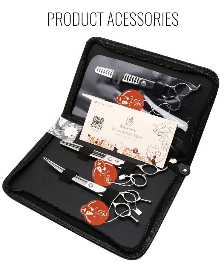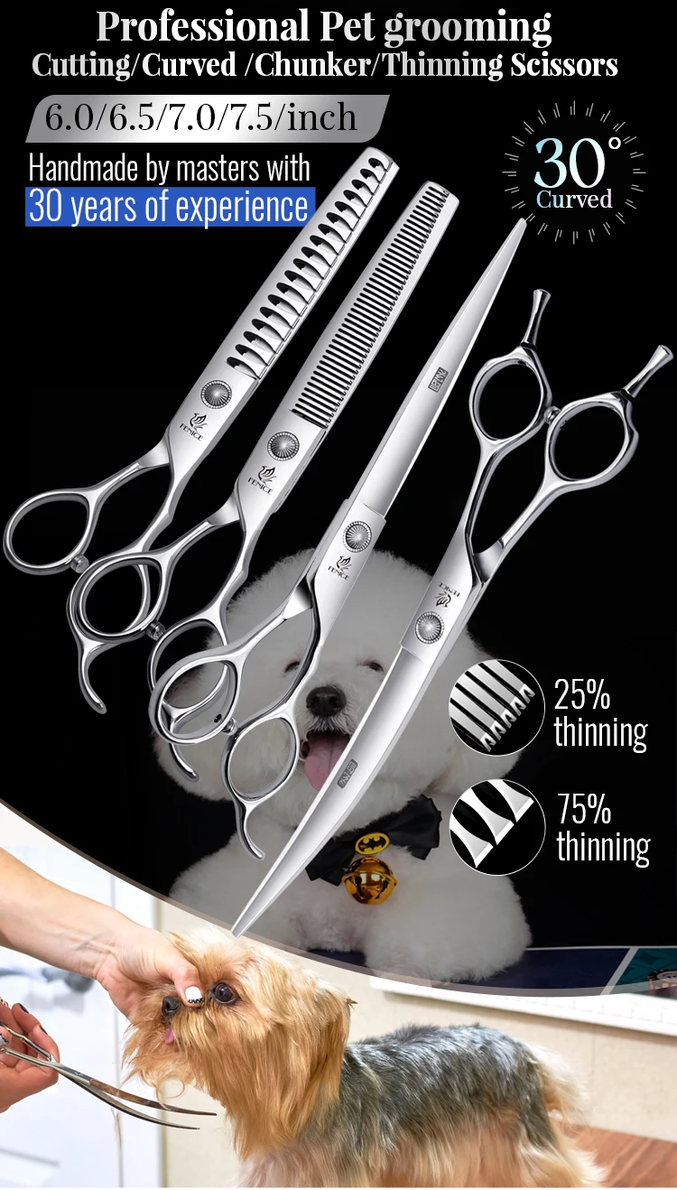 Fenice 6/6,5/7/7/7/7,5 дюймов, набор профессиональных ножниц для ухода за собаками, прямые, изогнутые, тонкие и шункерные ножницы