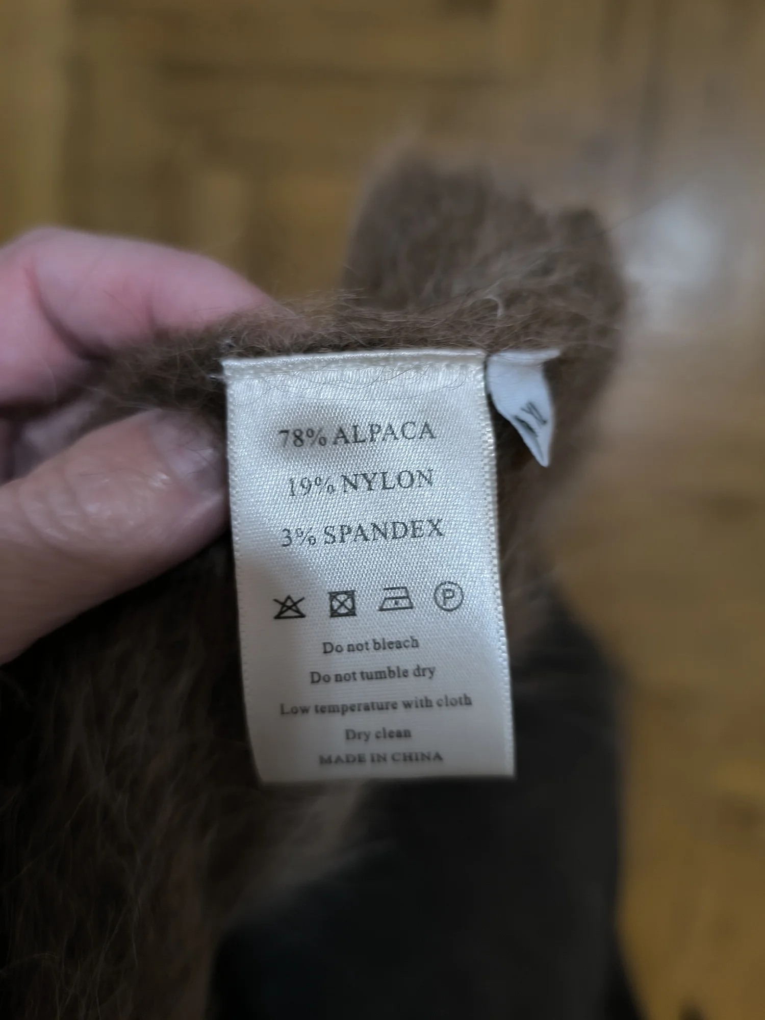- Состав материала:78%Alpaca 19Nylon 3%Spandex