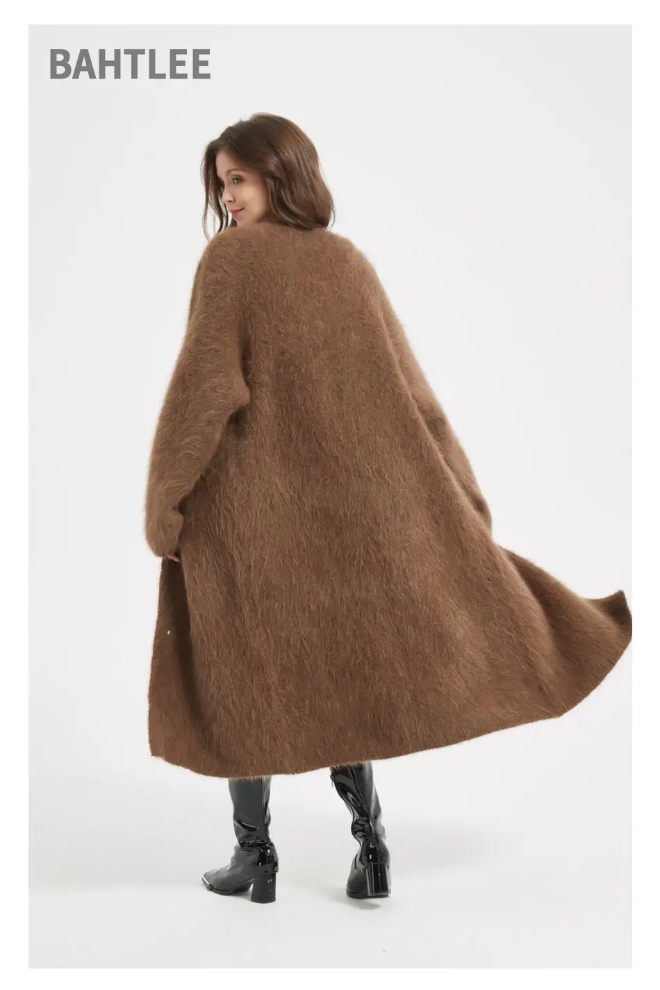 BAHTLEE Winter Woman Alpaca Wool Super Long Sweater Cardigan Long Sleeves...