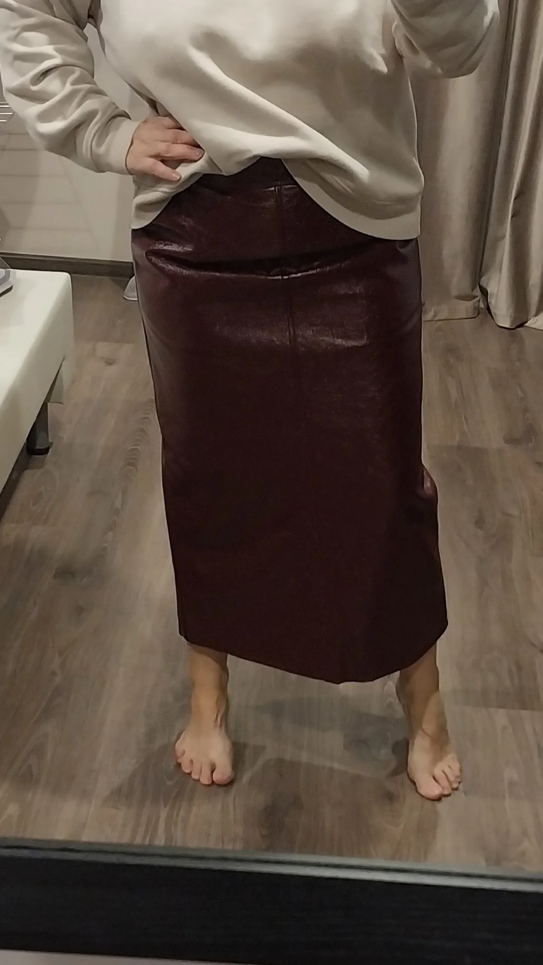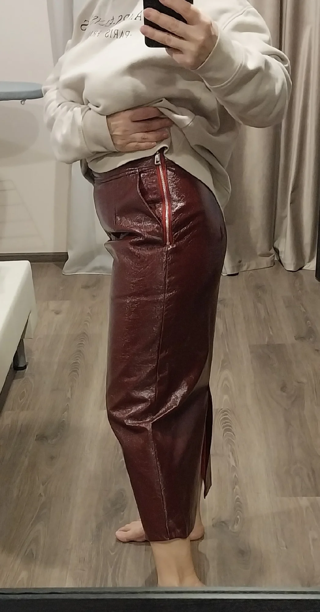 Отличная юбка! мой рост 160см, объёмы 98 - 74 - 98см. L - идеально! юбка на подкладе, слегка шуршит. молния меня не смутила (она не красная). размерная сетка чуть маломерит. доставлена за 12 дней!