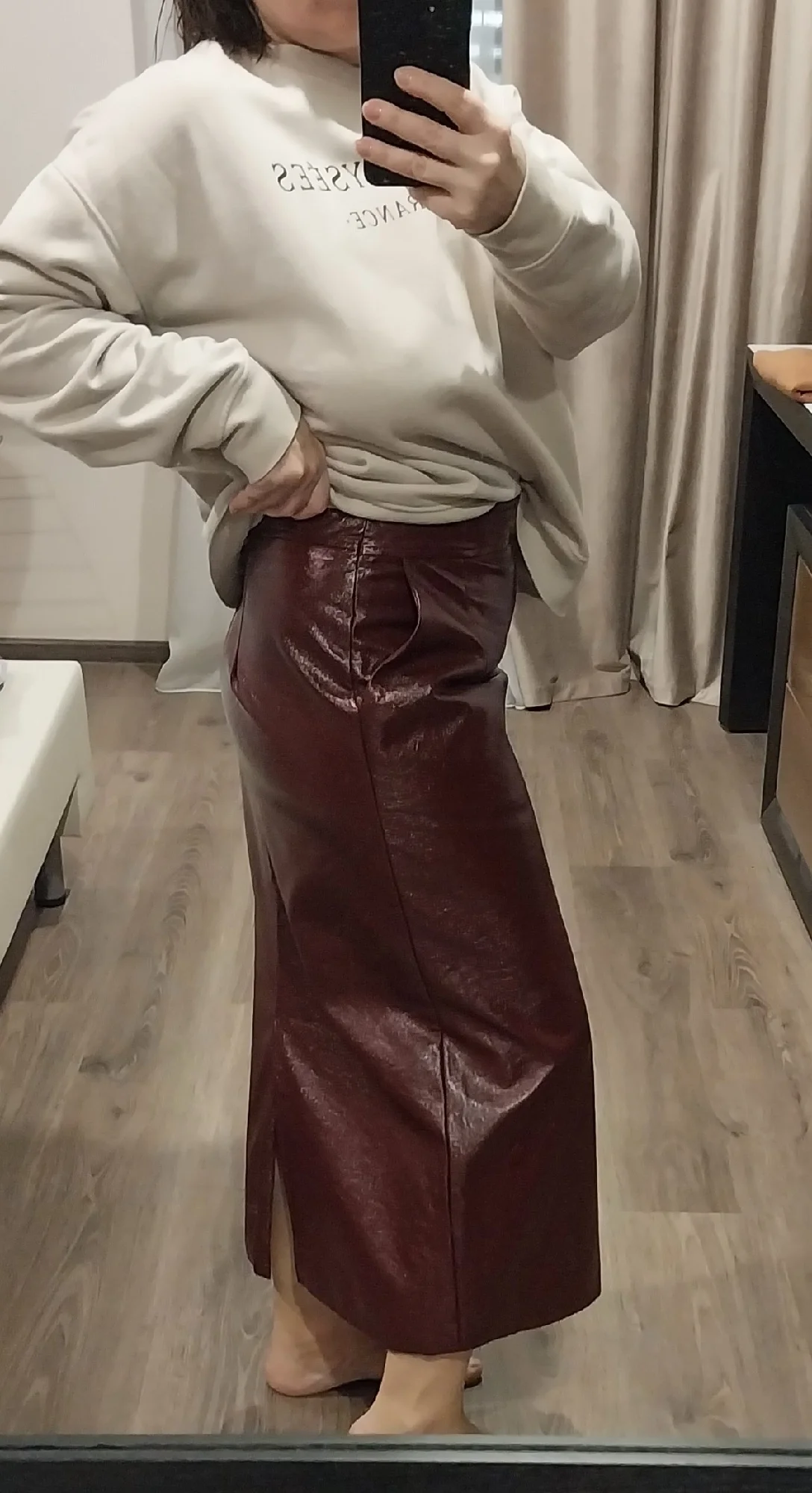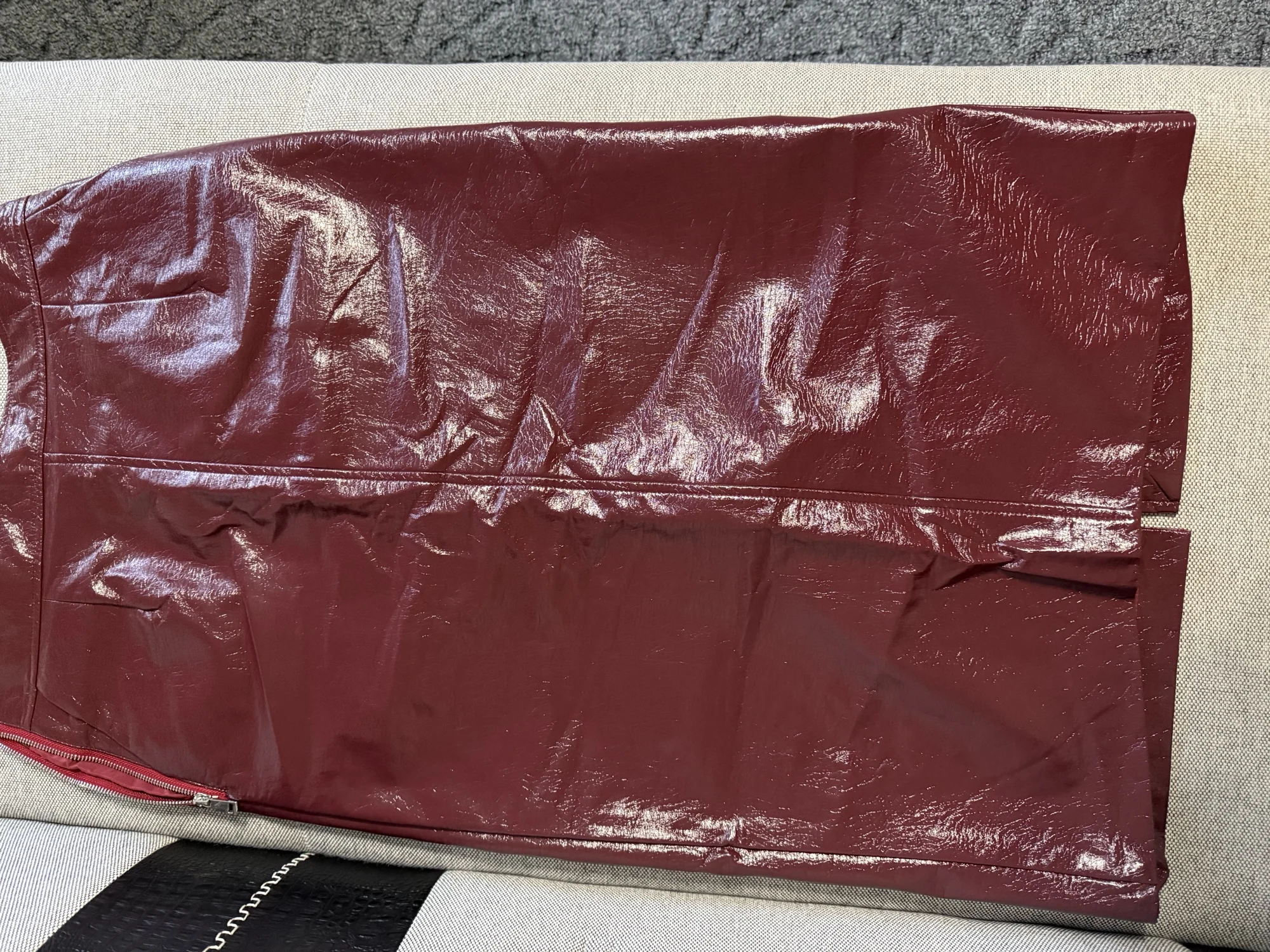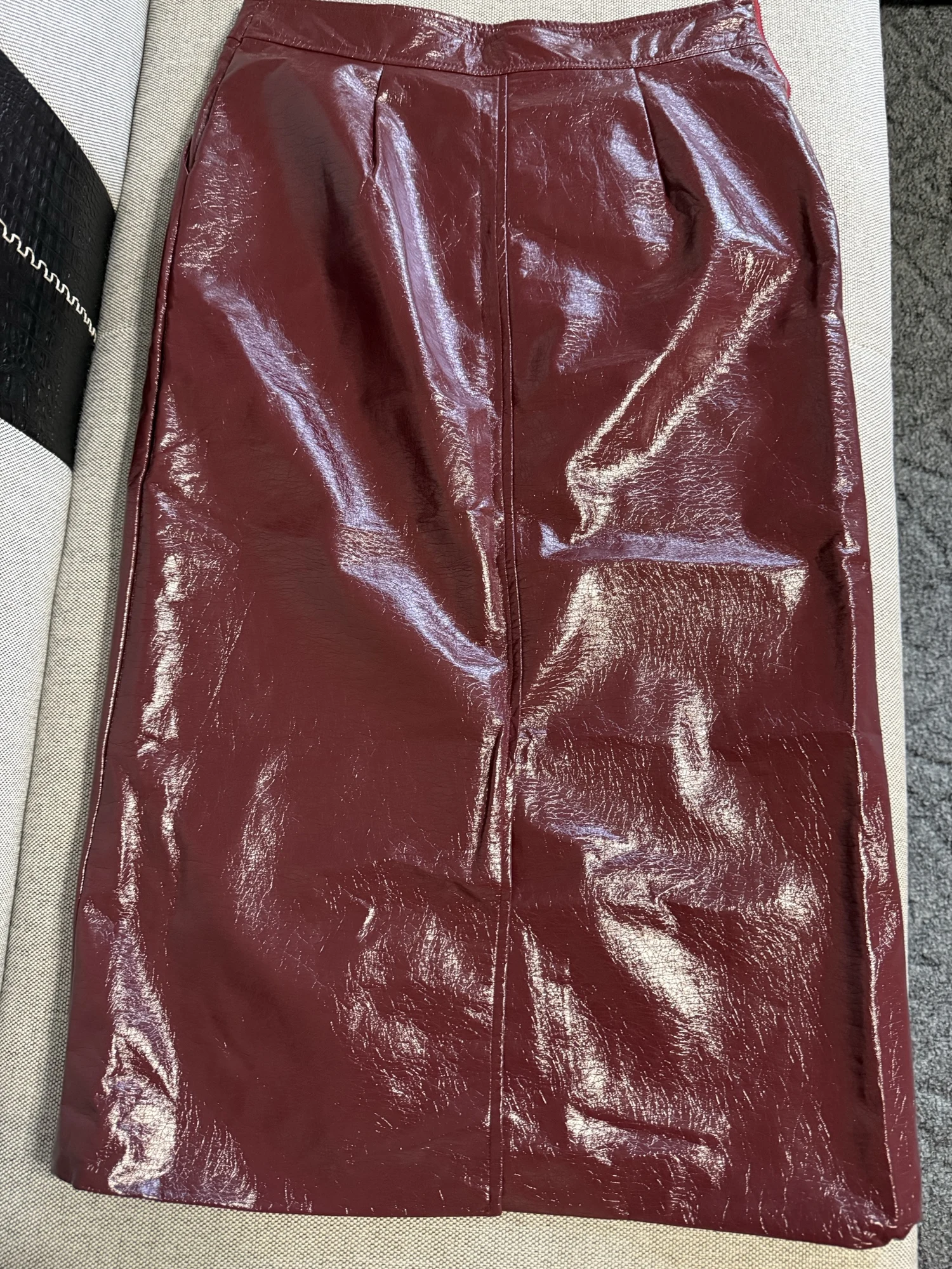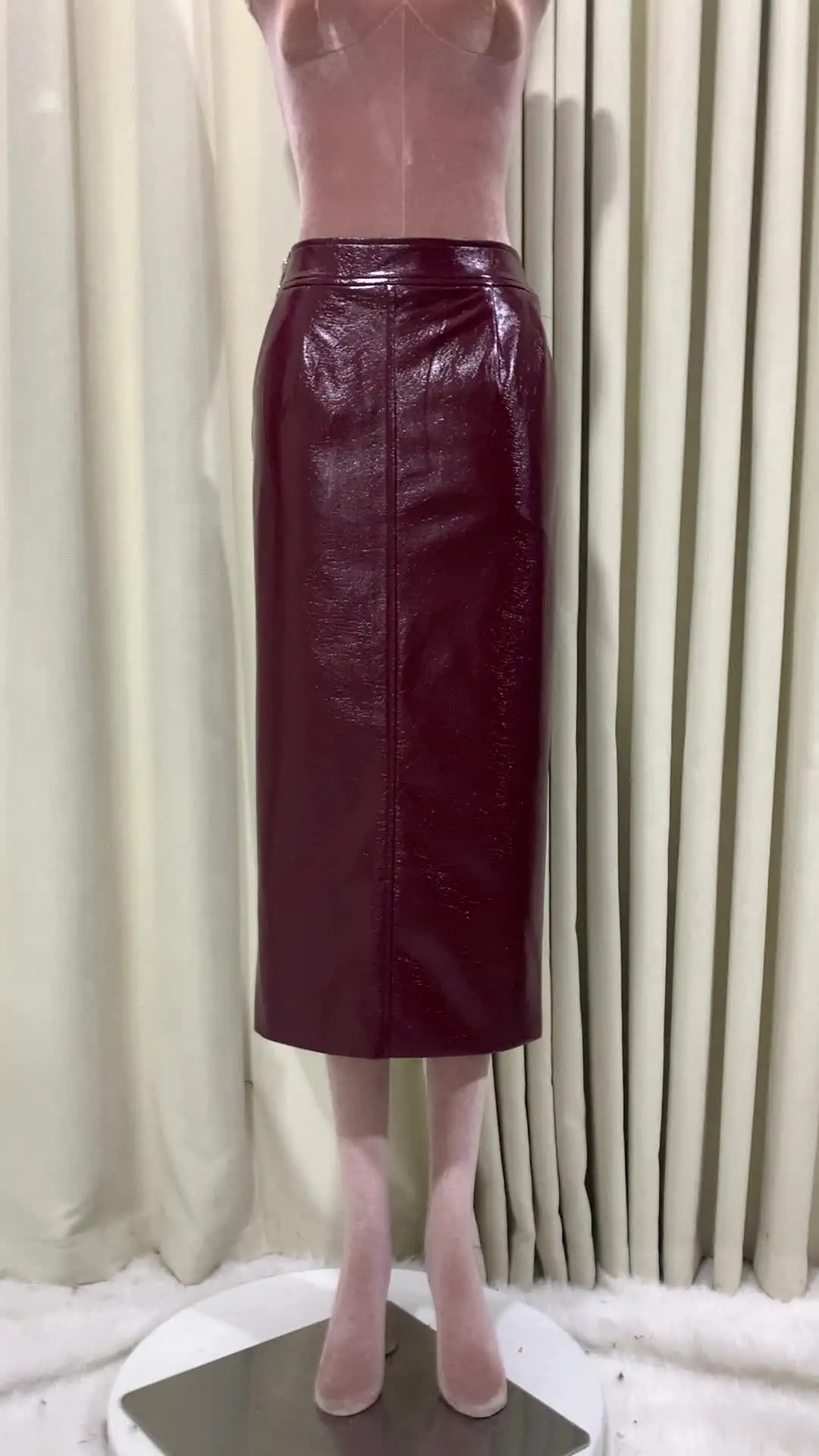 Lautaro Spring Autumn Shiny Reflective Patent Pu Leather Midi Pencil Skirt...