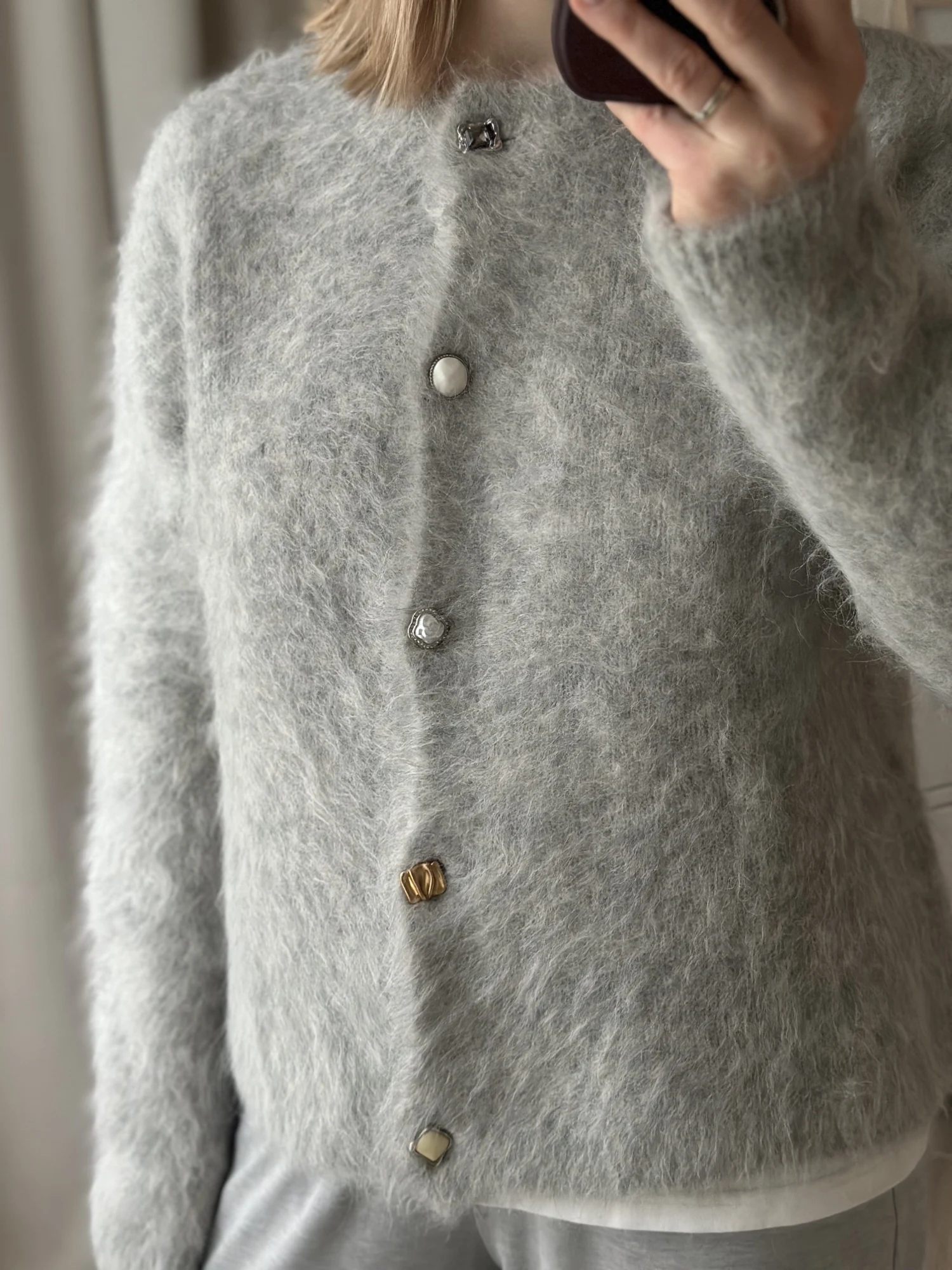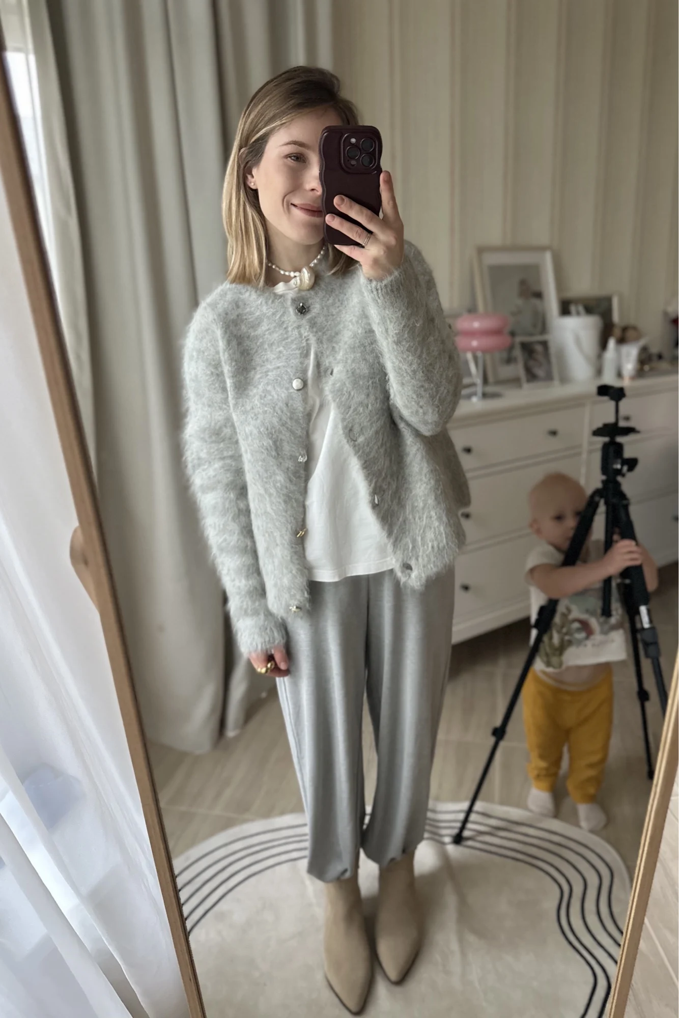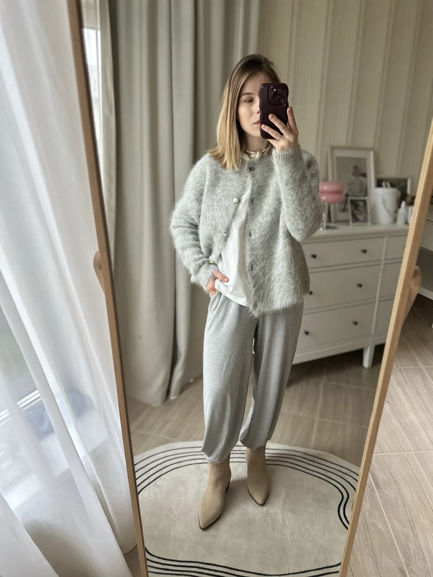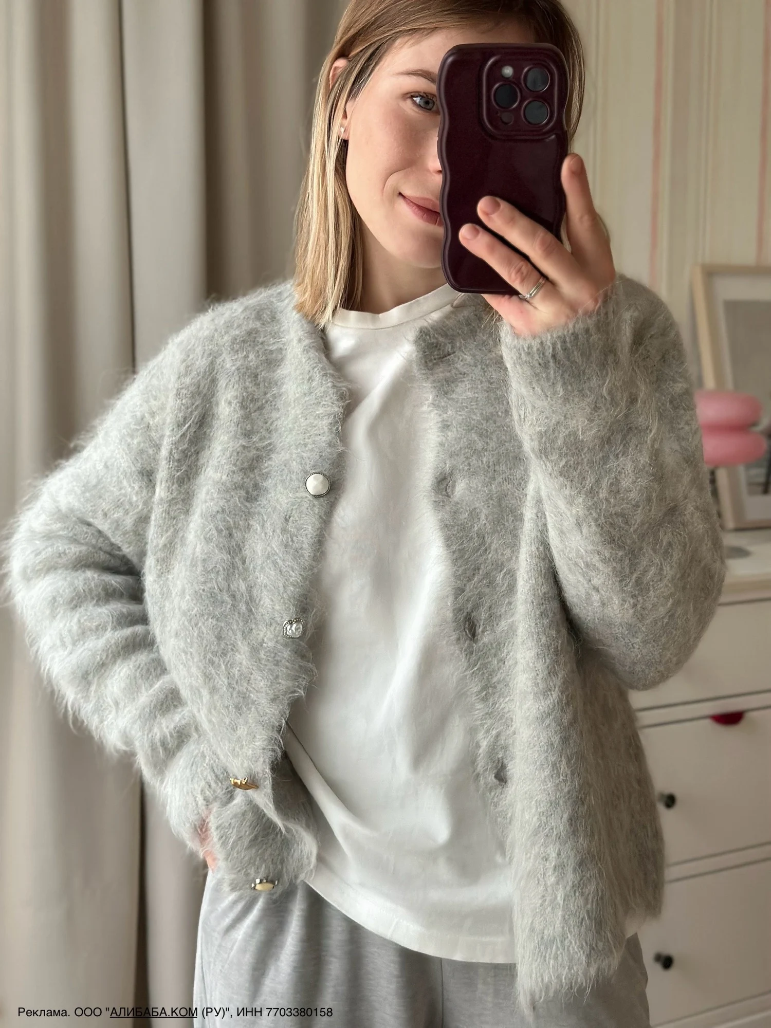 Заходите в гости на мой канал, там стильно и про али) А кардиган отличный! выполнен из шерсти альпаки, очень пушистый, теплый, практически не колется. И какие красивые акцентные пуговицы 💔 Сейчас вся эта история волосатая очень модненькая, кардиган не бюджетный, но качество, задумка и исполнение полностью оправдывают эту стоимость. Единый размер на 159, 84-70-90 подошел отлично. Длина изделия 53 см, рукав 46, объем груди 112.