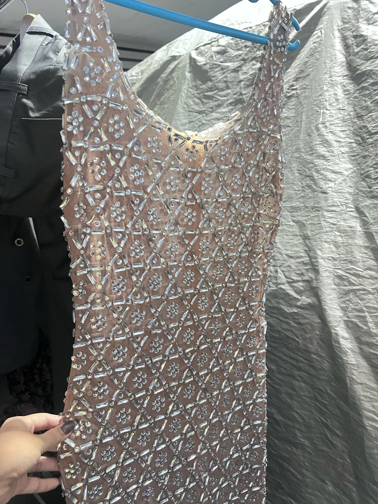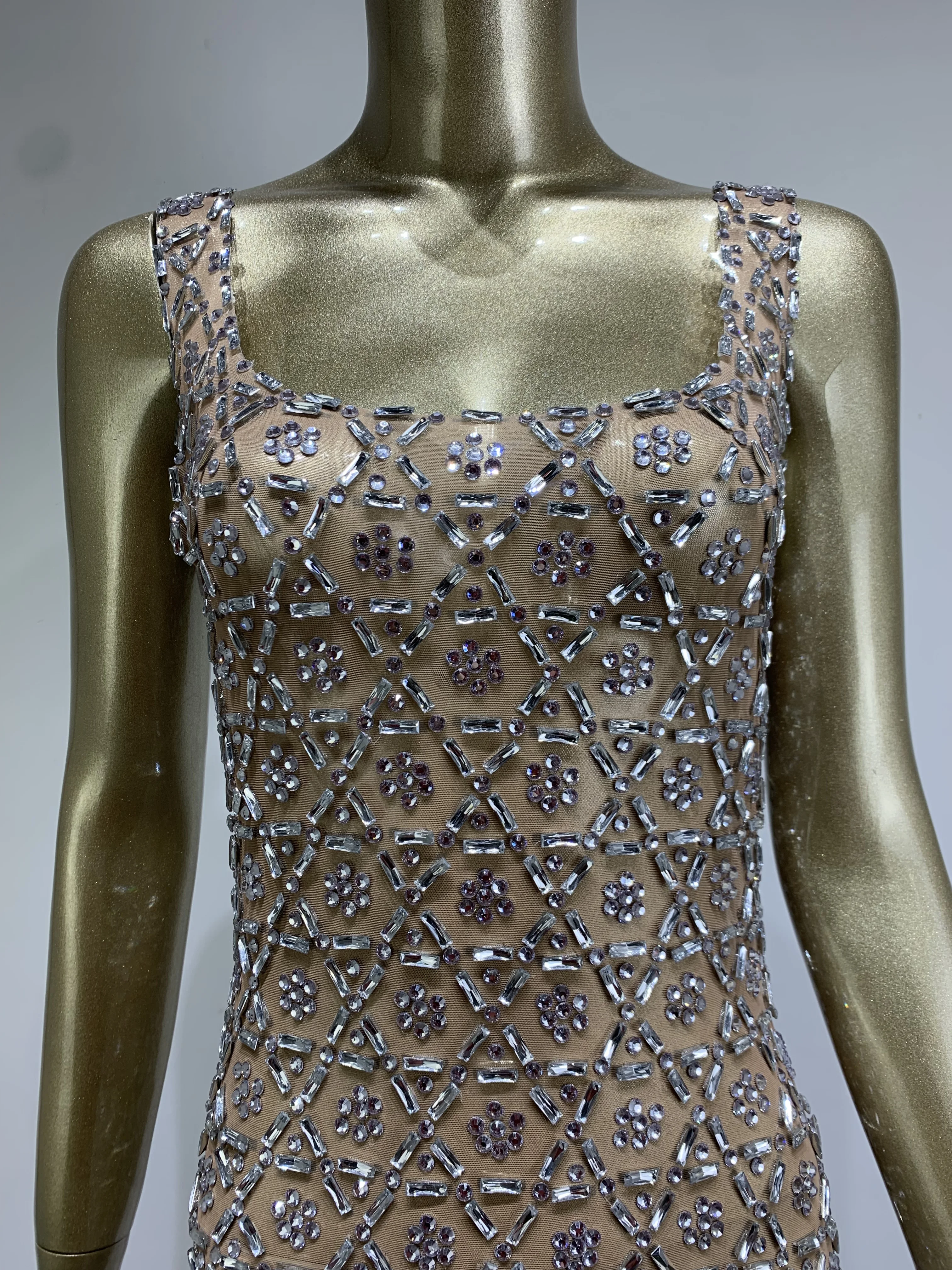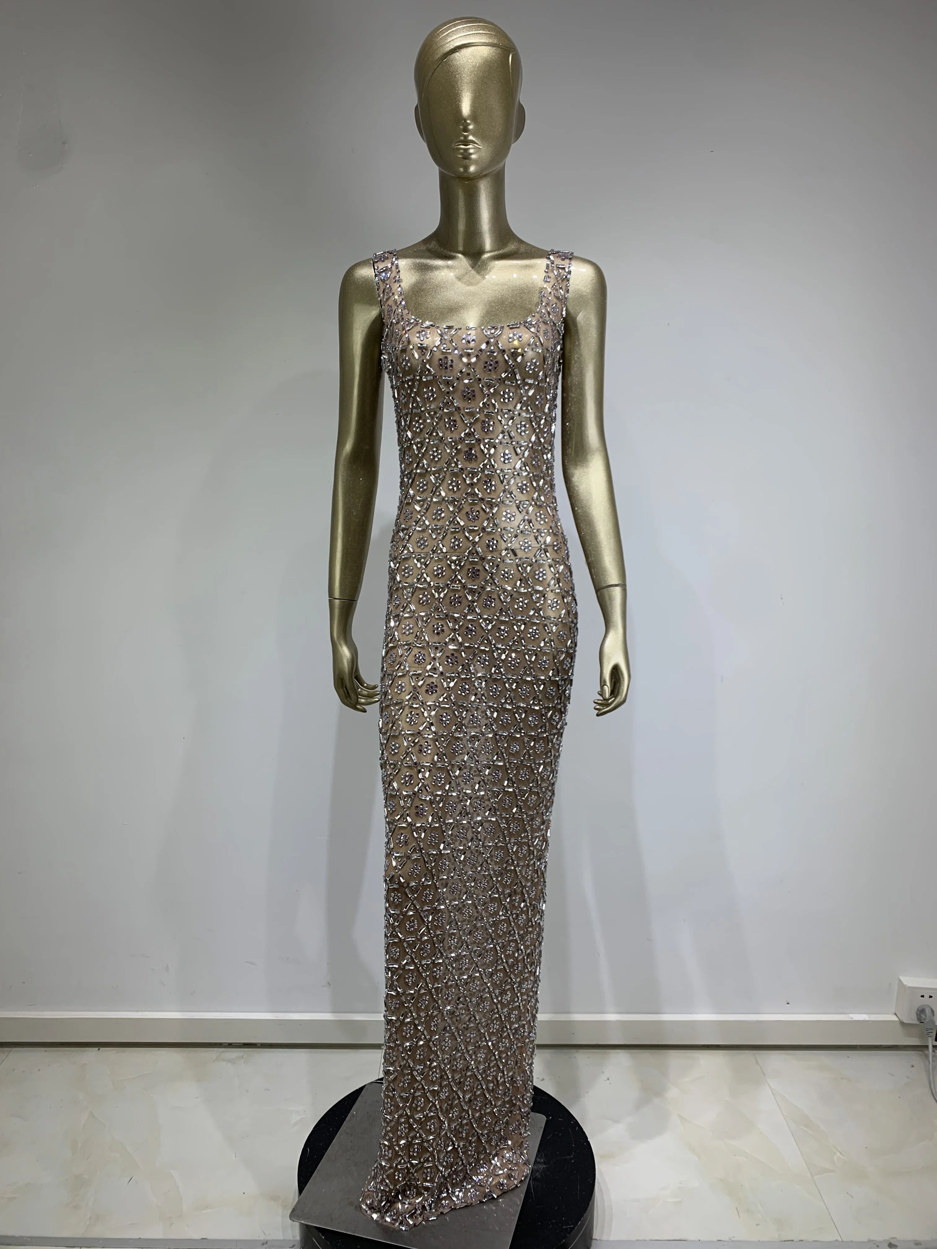 Women Sexy Mesh Transparent Crystal Diamonds Long Maxi Dress Birthday Party...