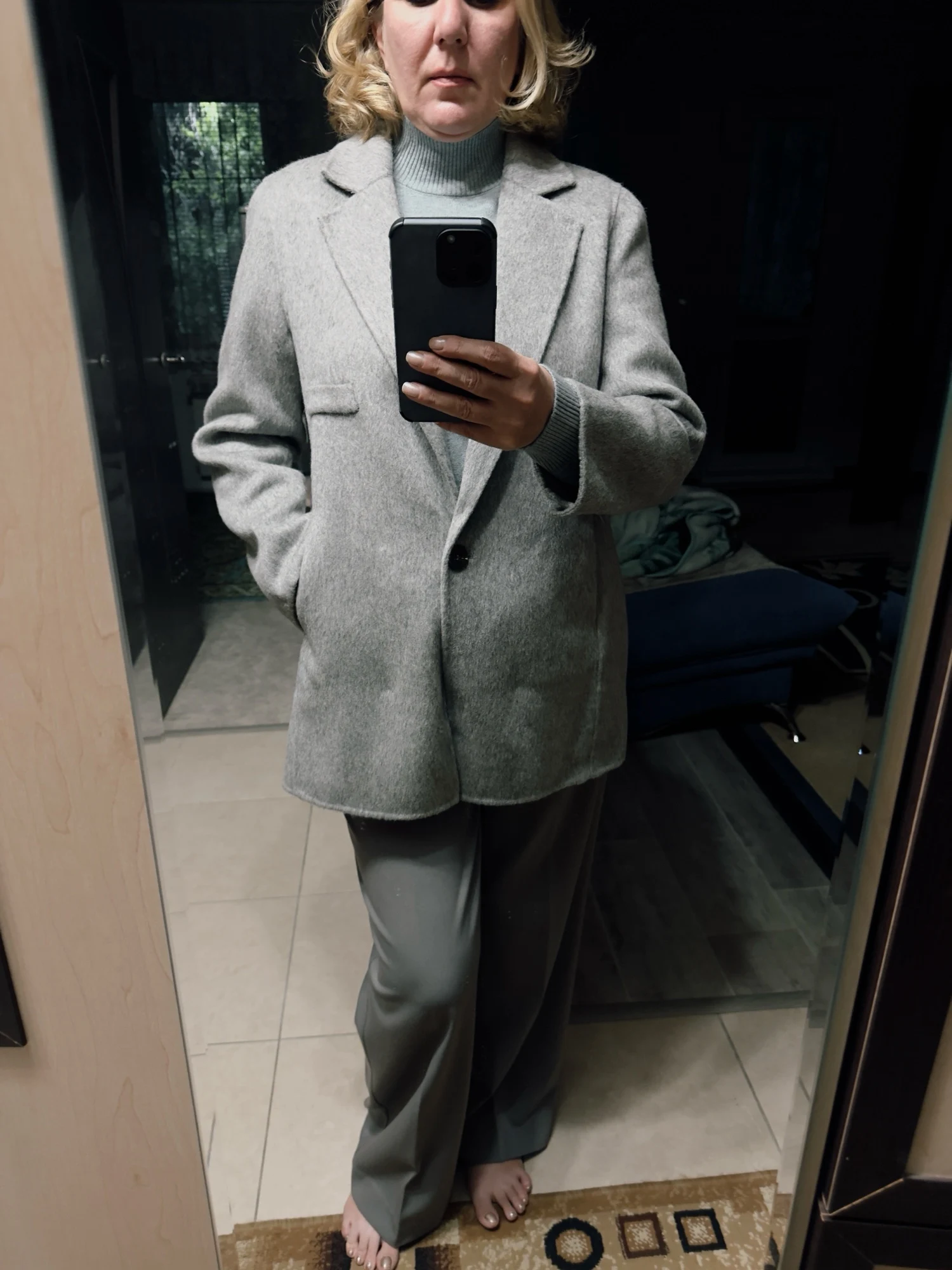 Пальто как на фото, цвет тоже. Пыталась сделать красивые фото, но не очень получилось. Обьем груди 100, талия 86, рост 170, подошло хорошо. Рукав особенно понравился, не короткий и не длинный. Смотрится как пиджак, и легкий. Качестао супер. Единственное, что не понравилось, это пуговицы, какие то они обыкновенные. Есть два кармана, достаточно гоубоких. пришло в пыльнике, и очень мятое, но легко отгадилось, причем утюгом с отпаривателем.