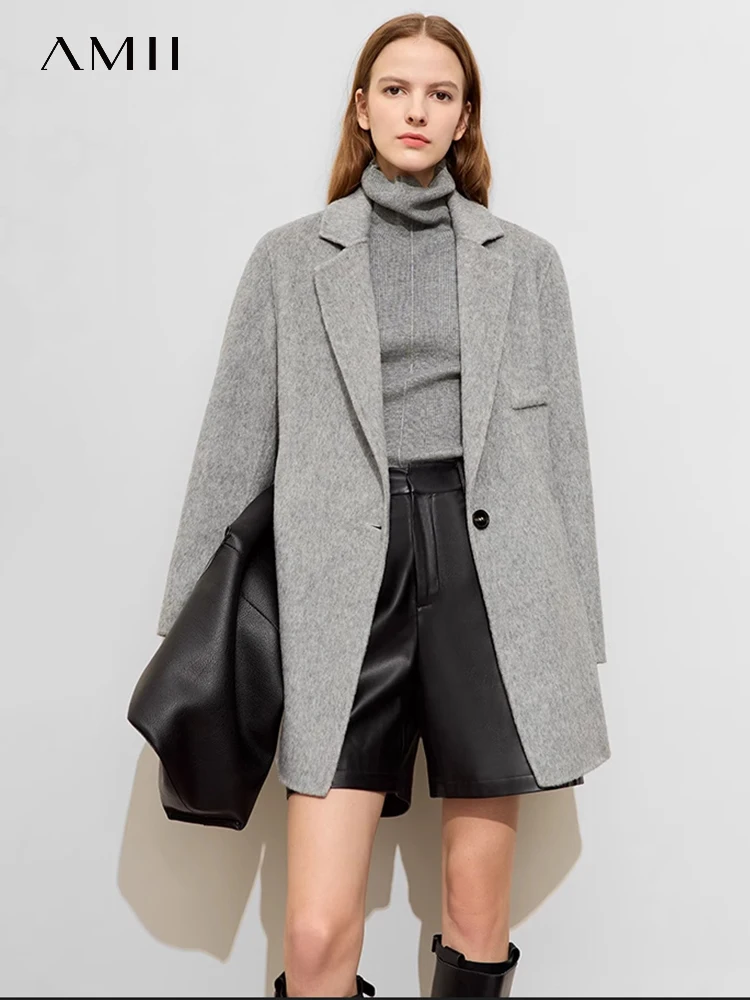 AMII Minimalist Old Money Woolen Coat for Women 2023 Winter New Slit Suit...
