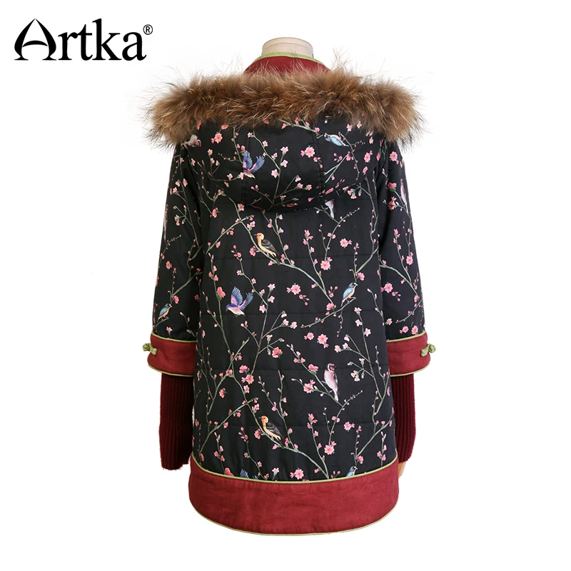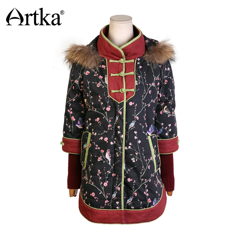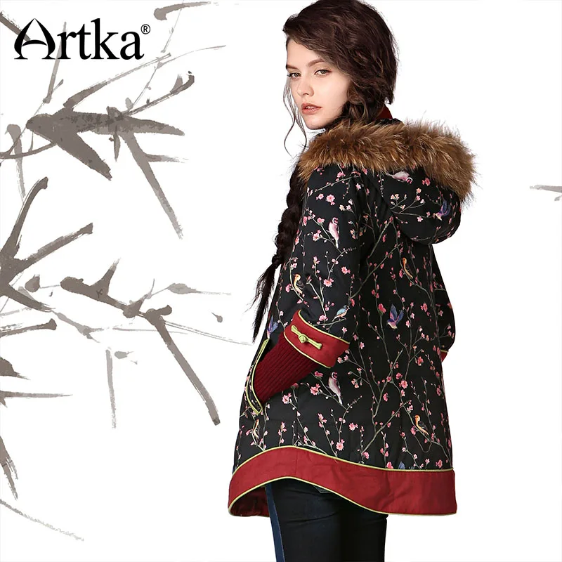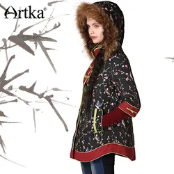 Artka 2015 женская ретро новая коллекция зимней одежды со шляпой с длинными рукавами цветочое элегантное удобное коротное хлопоковое пальто MA11343D 11.11