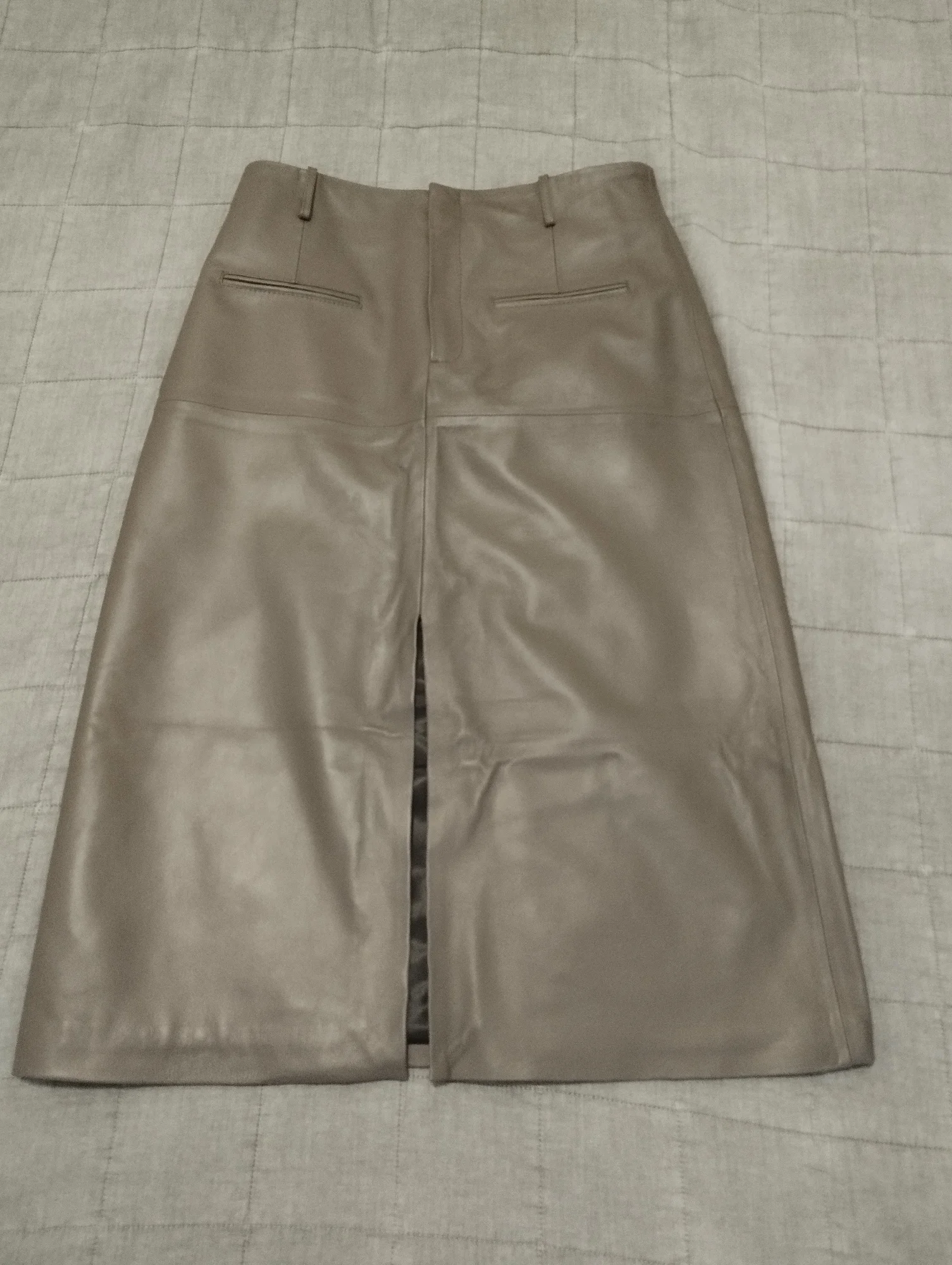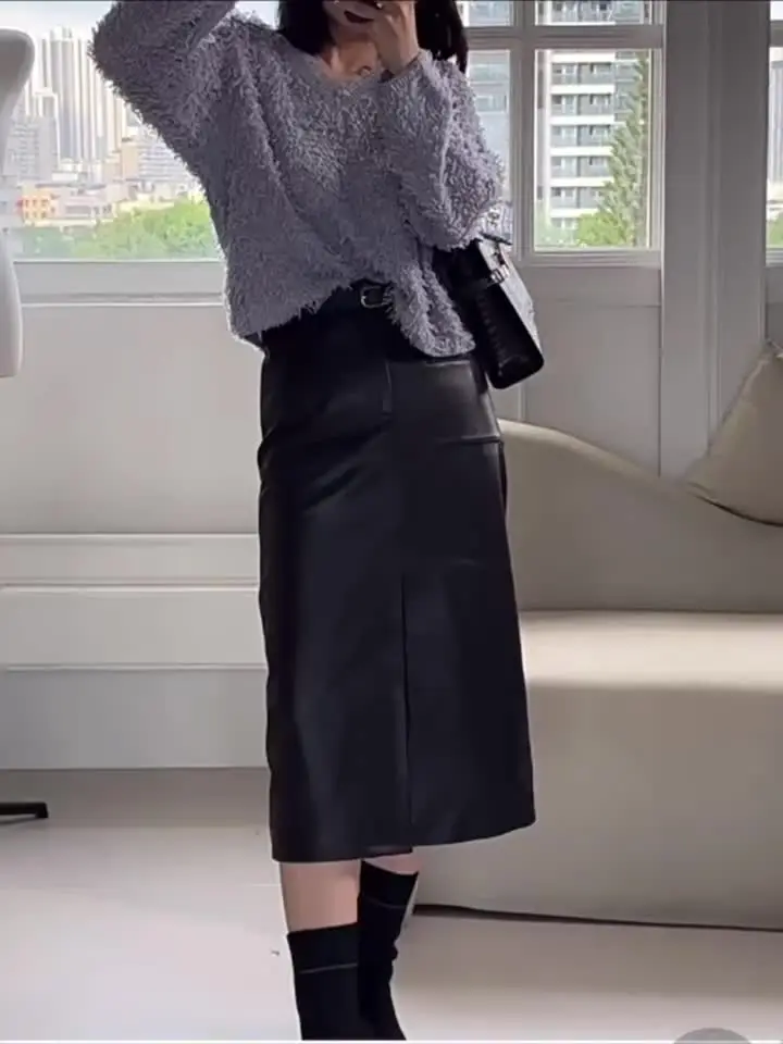 Women Long Leather Skirt 2023 Winter Euro-American Calf Length 100% Sheepskin...
