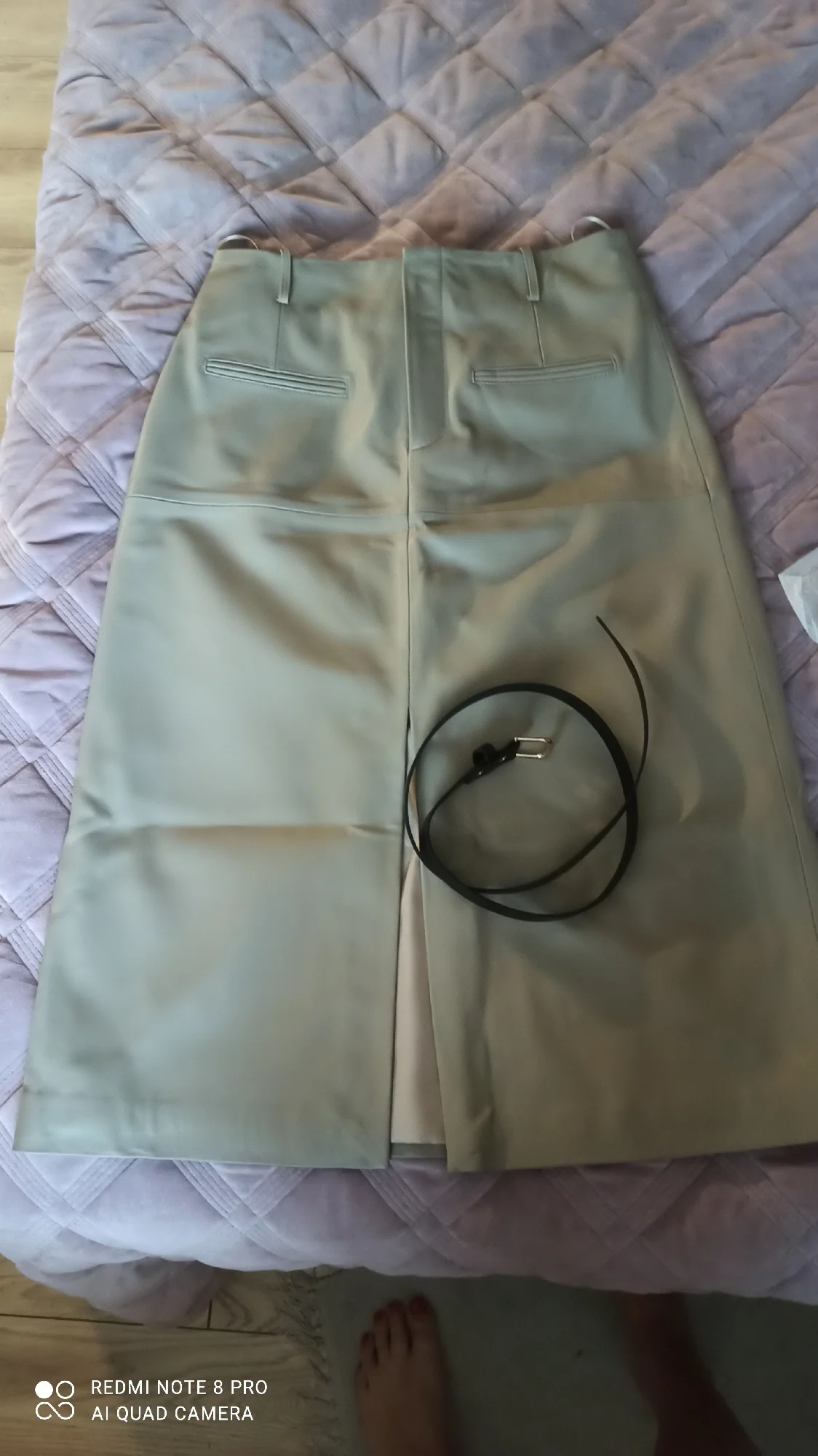Юбка была упакована в картонную коробку и проложена бумагой. Кожа мягчайшая, карманы обманки, юбка на подкладке, пояс застёгивается на крючок. Юбка А силуэта. Всё как в описании. За такие деньги это подарок! Ремень из натуральной кожи, видно дырки от щетины и огнём проверила. Параметры и цвет соответствуют заявленным.