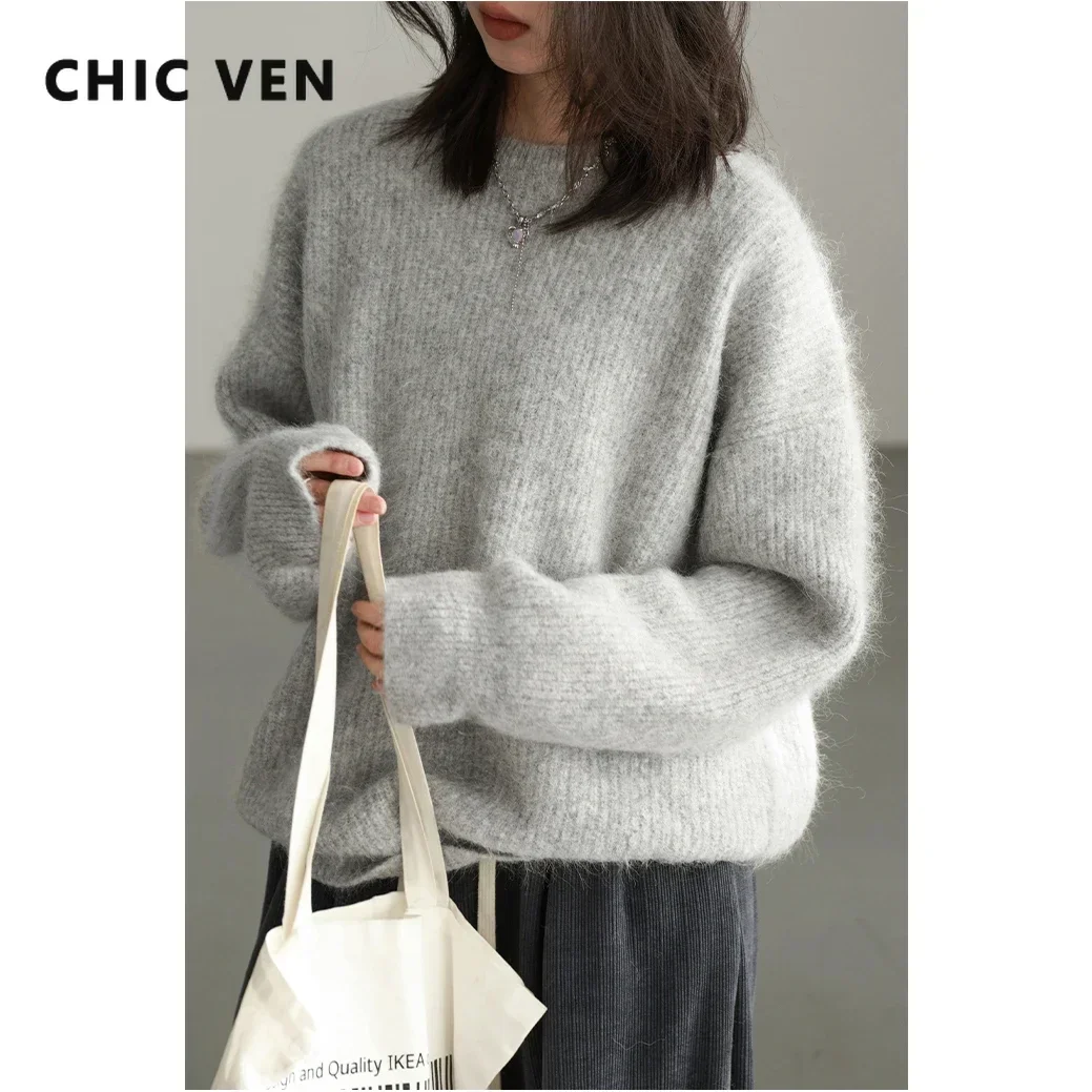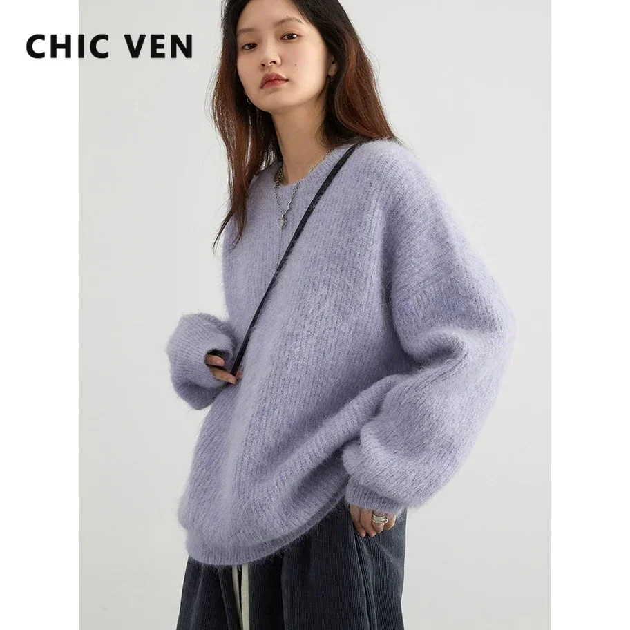 CHIC VEN Fashion Women's Sweater Pullover Solid Loose O Neck New Soft Female...