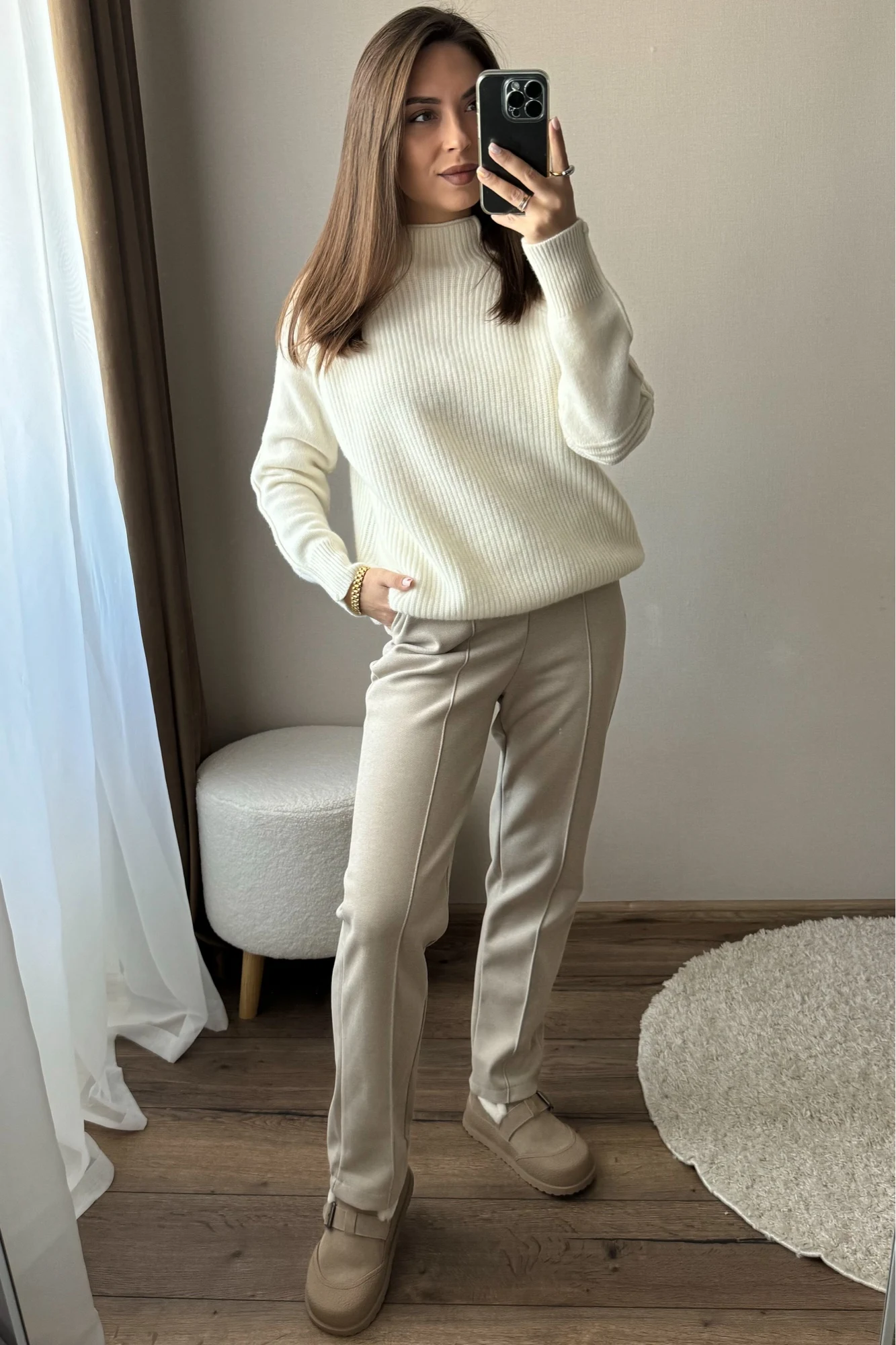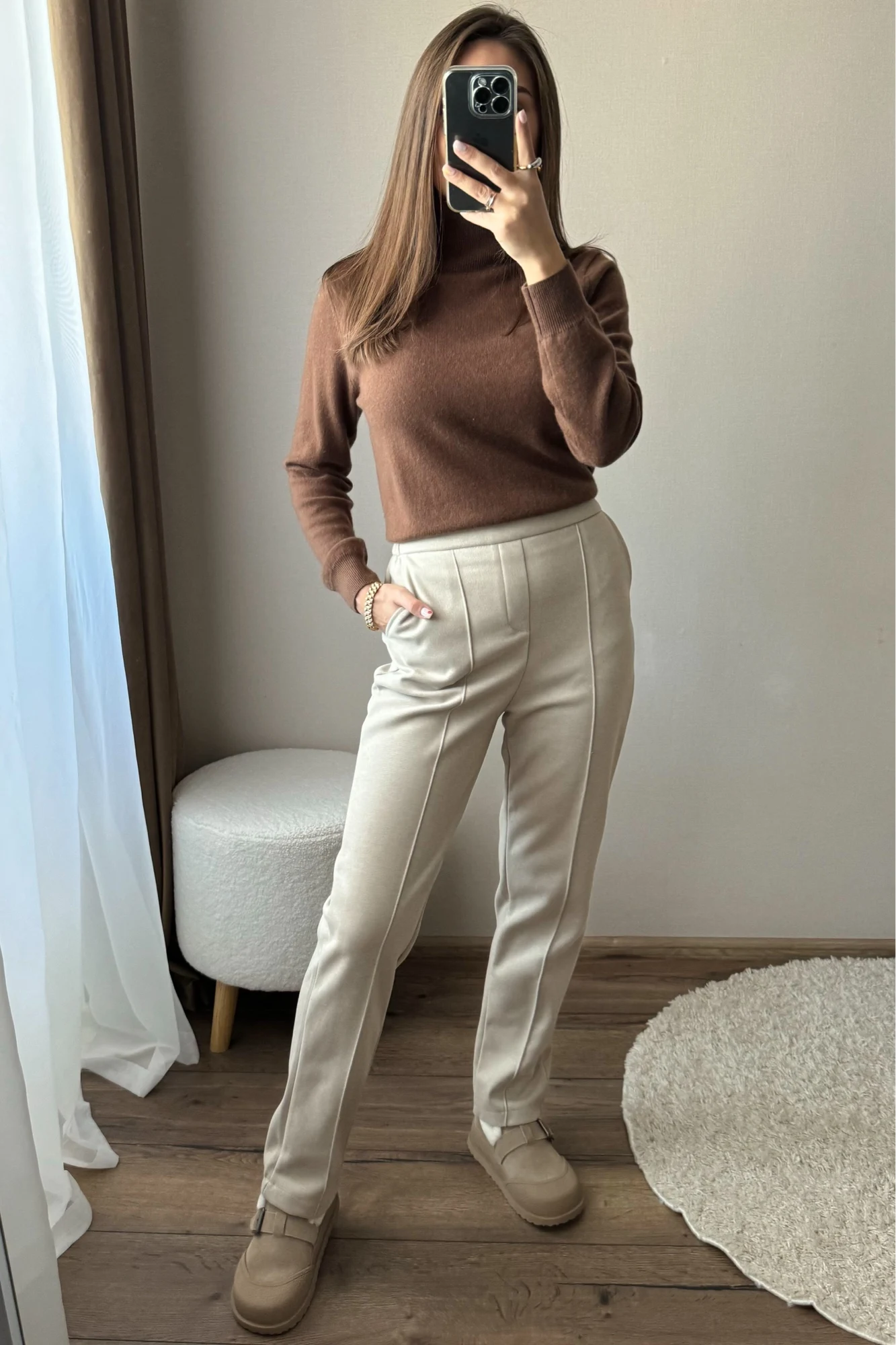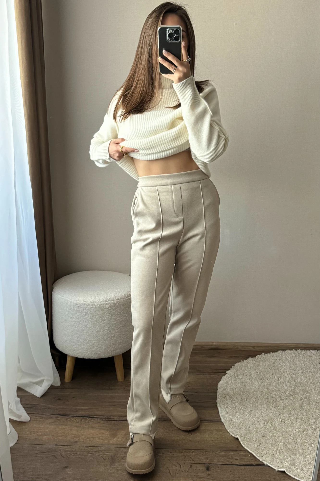 Теплые трикотажные брюки На свои параметры 86/68/88 см и рост 160 см выбрала брюки в цвете oatmeal в размере S. По объему талии и бедер есть запас и на бОльшие параметры. Состав: 20% хлопок, 80% полиэстер. Материал тактильно очень приятный, мягкий, не колется; материал плотненький, хорошо держит форму. Сзади талия брюк на резинке, спереди имитация ширинки. Сбоку расположены карманы. Модель брюк укороченная. Спереди по всей длине идет декоративный шов-стрелка. Пошиты аккуратно, без дефектов. Внутри без утепления. Комфортный вариант для повседневной носки. Хорошенькие теплые брючки.